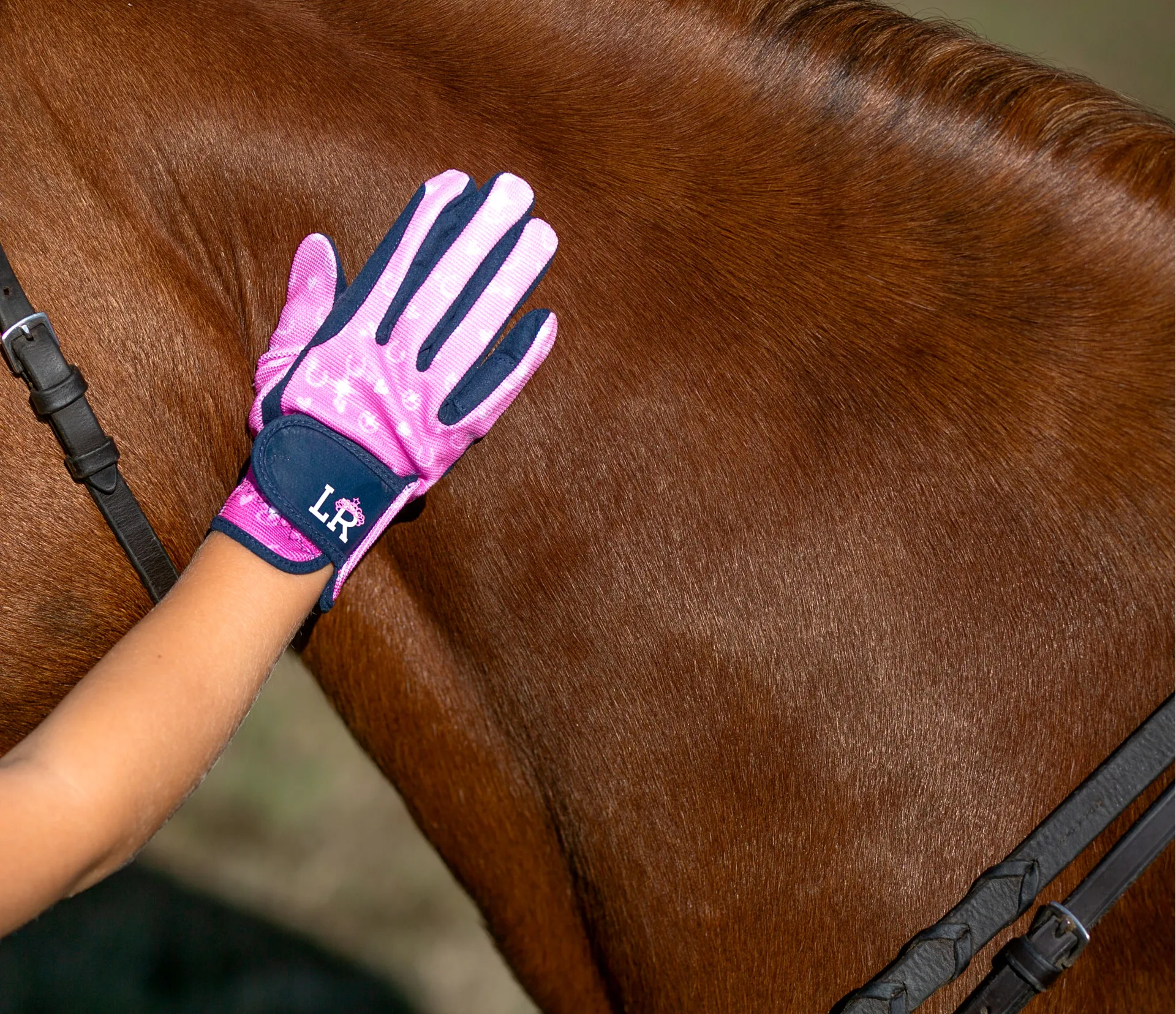 Question(s) asked regarding Pony Fantasy Riding Gloves by Little Rider - Navy/Pink