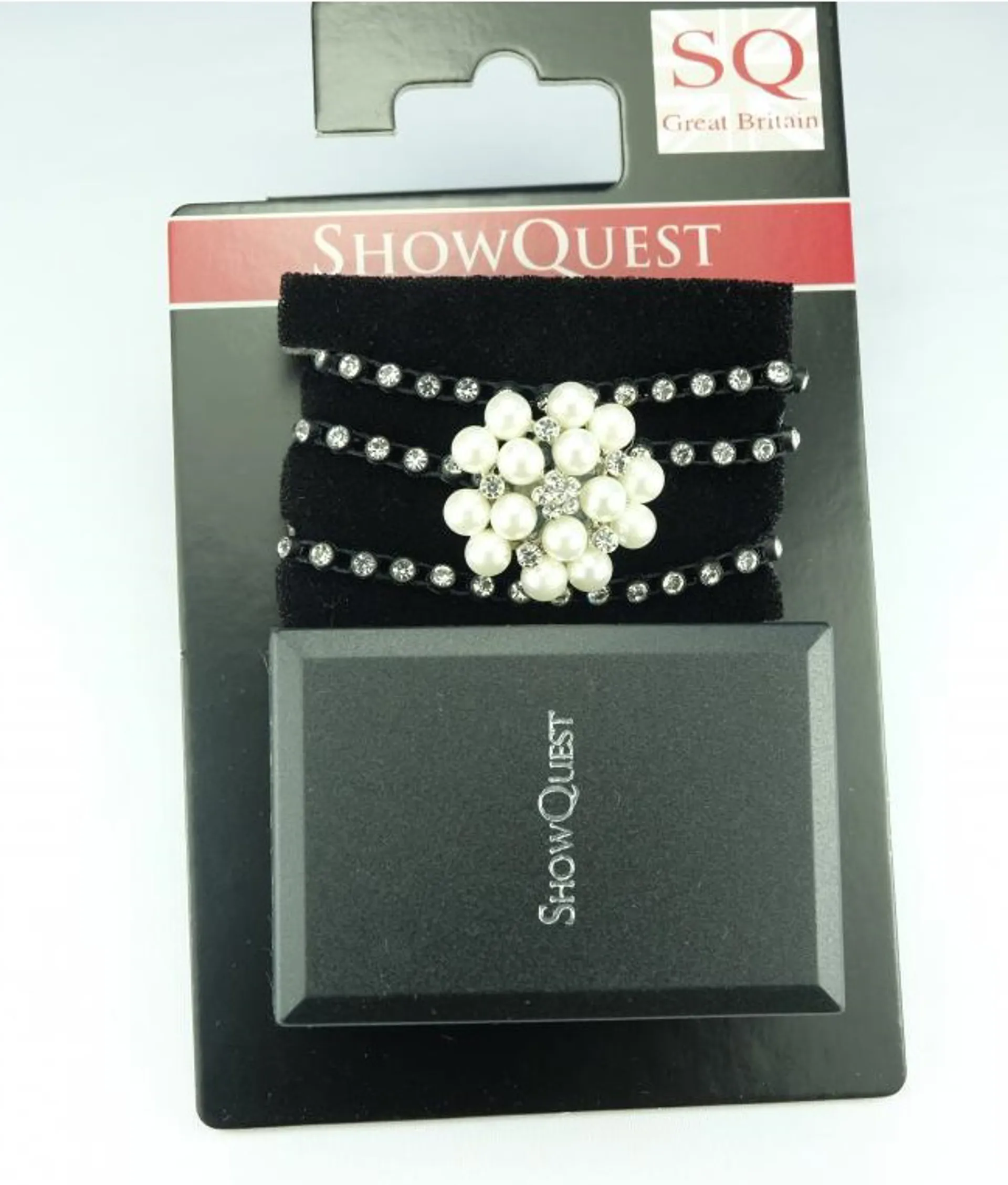 The ShowQuest Hat Band Esteem Crystals is made from strong crystal elastic with a beautiful setting of pearls and crystals.