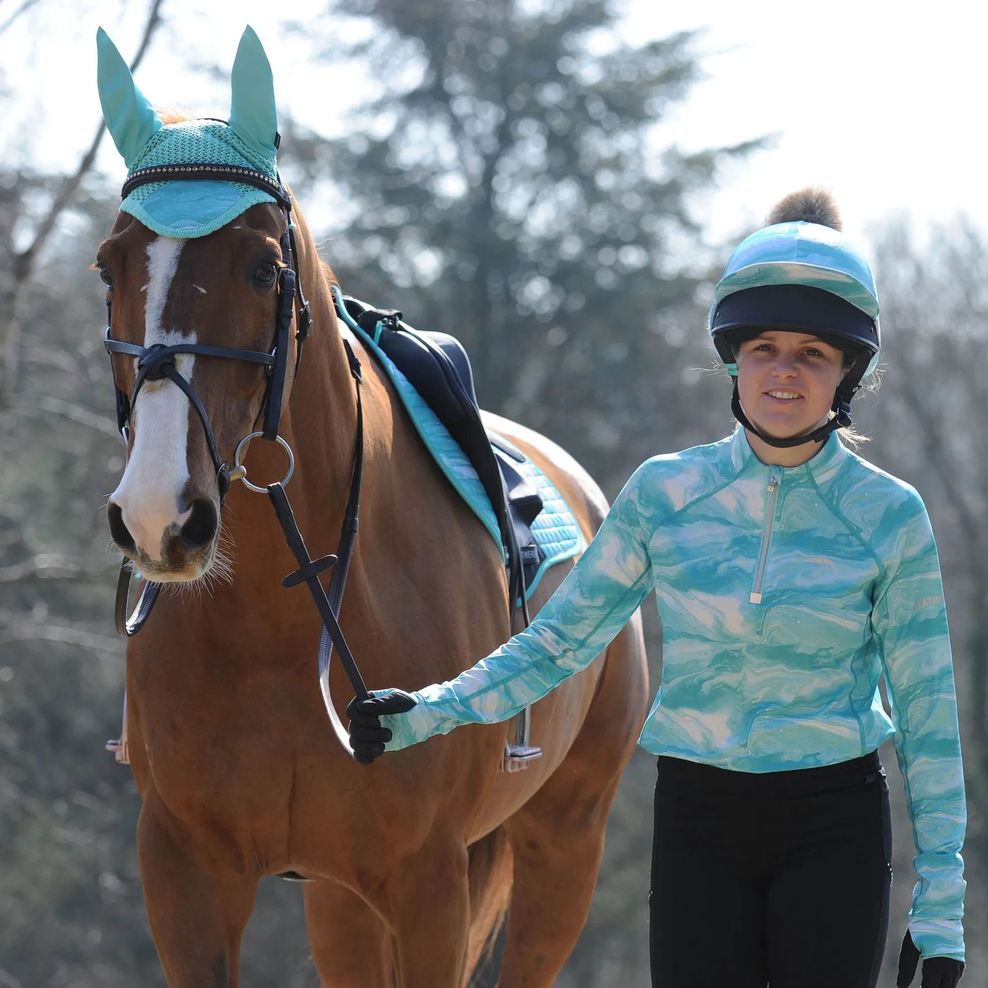 Finished with a faux fur pom pom and silver reflective WeatherBeeta logo print on side, these hat silks match with the Marble Print Range. 90% Polyester/10% Elastane.
