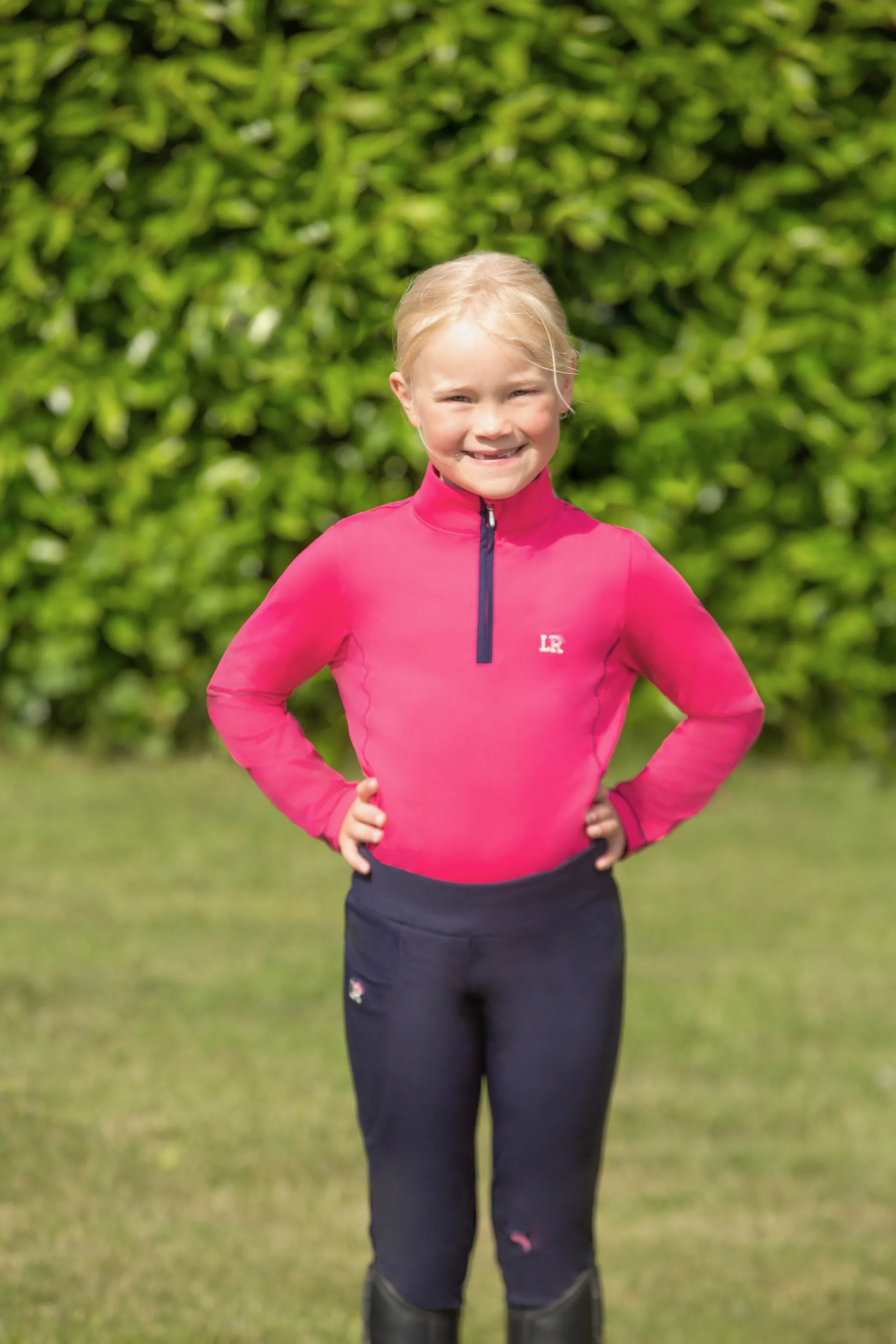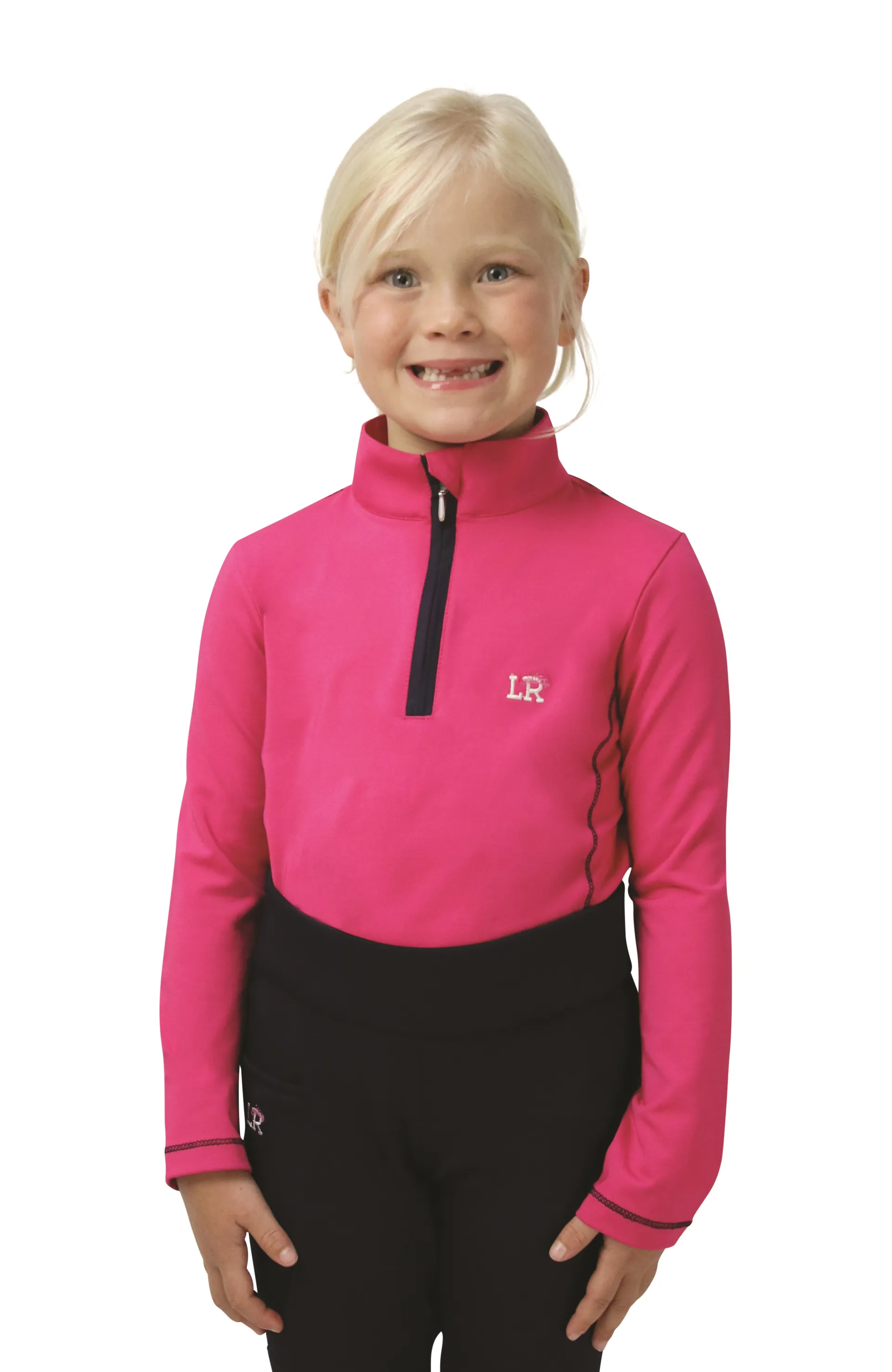 Question(s) answered about Hy Equestrian Sara Base Layer By Little Rider - Pink/Navy