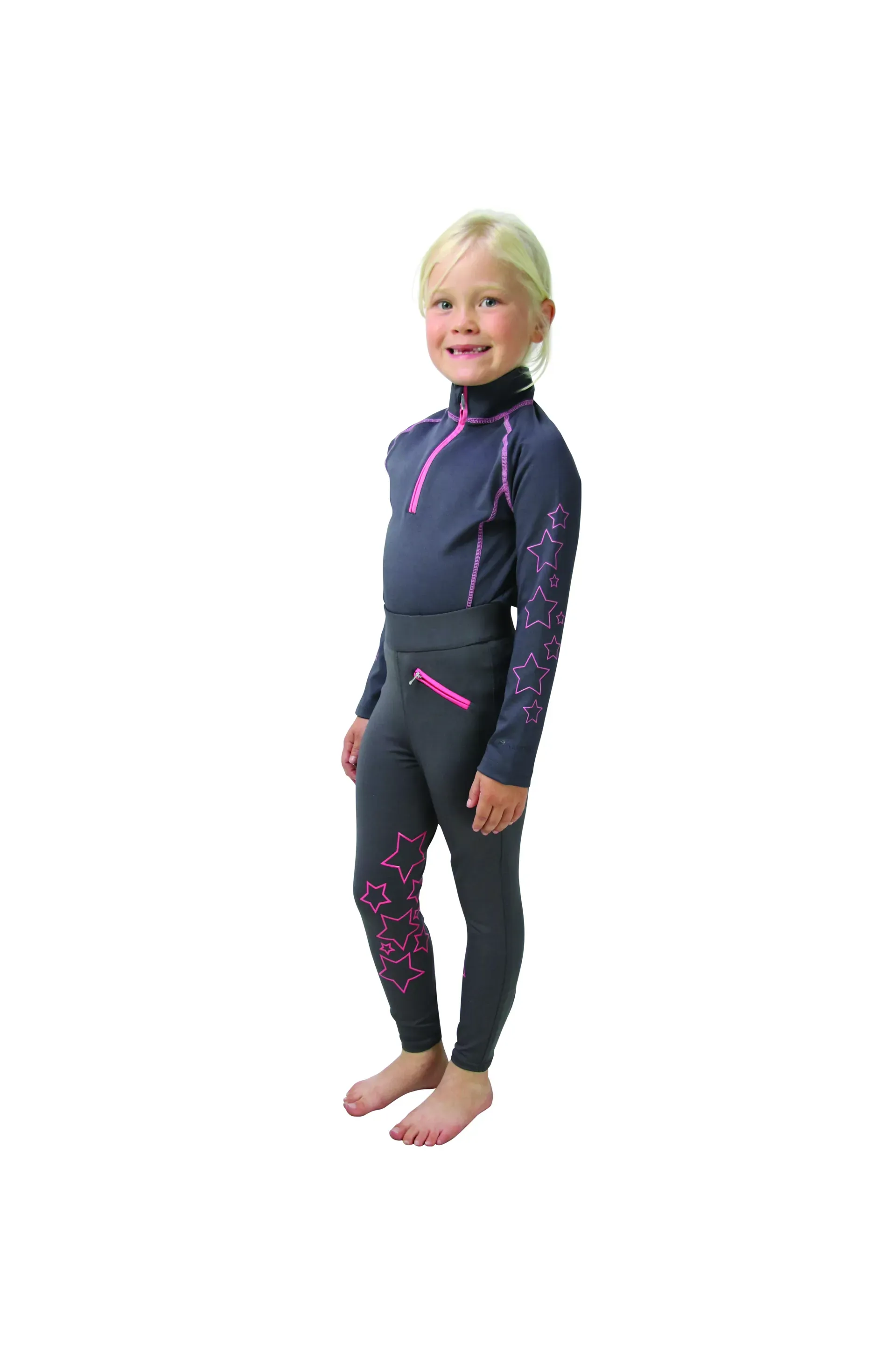 Question(s) answered about Hy Equestrian Stella Children's Base Layer - Grey/Pink