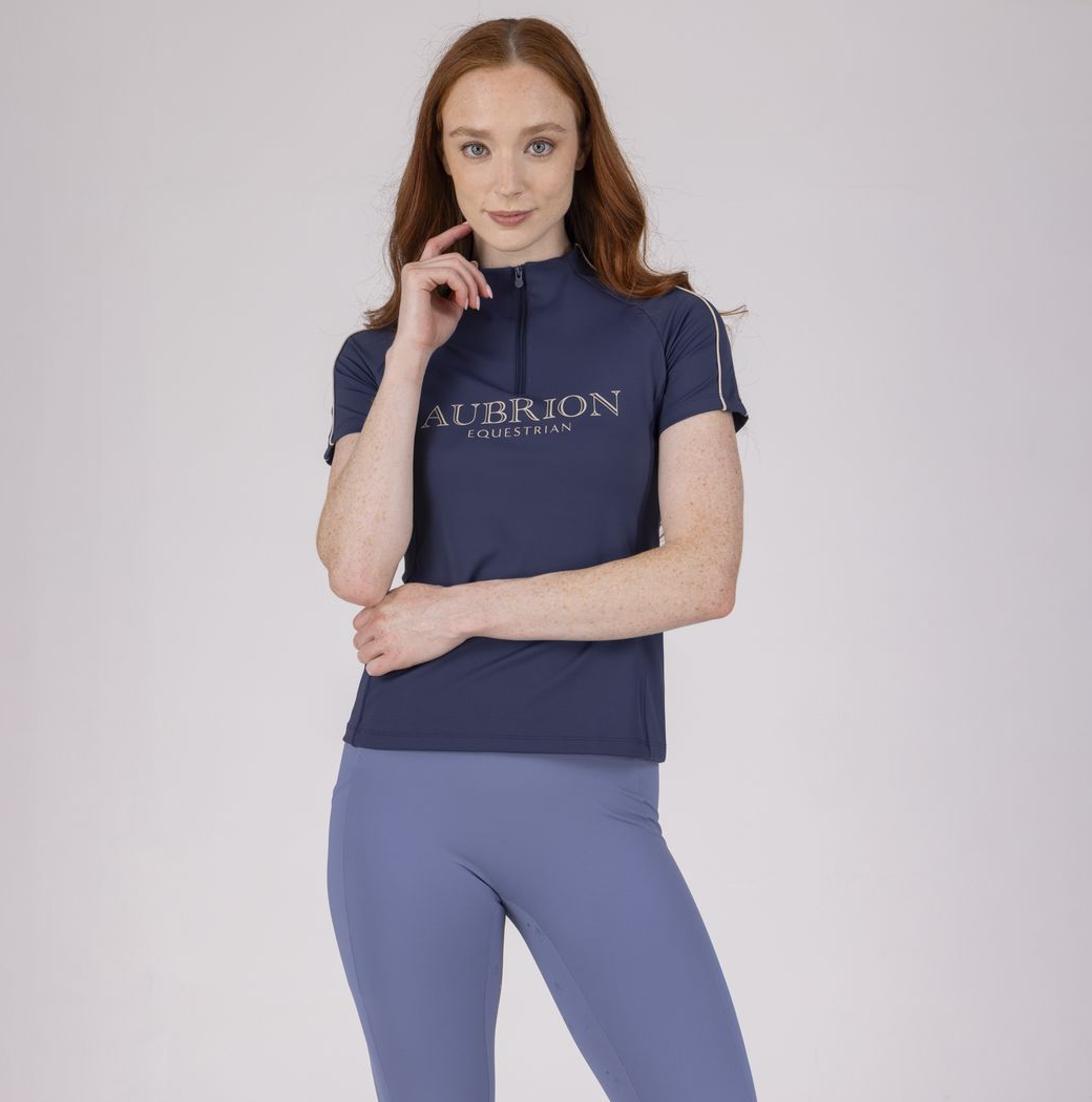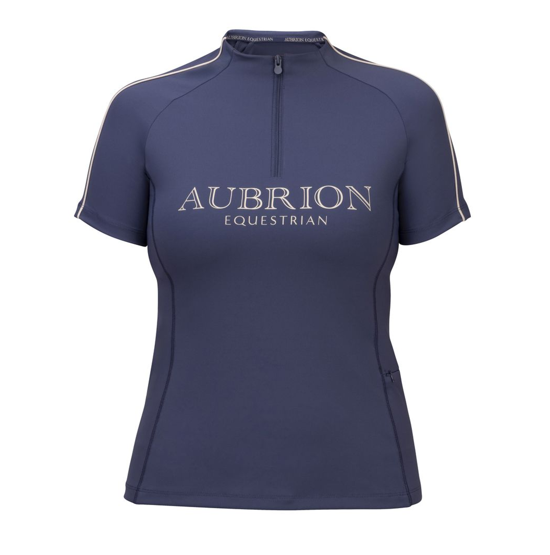 Elevate your ride with the Aubrion Equestrian short sleeve base layer. Crafted from a soft, technical fabric with 4-way stretch and a flattering body fit, this riding base layer delivers enhanced comfort and unrestricted movement in the saddle. Breathable and moisture wicking, it draws sweat away from the skin to help keep you cool, dry and comfortable during training or everyday riding. Thoughtful design details include a shaped neckline, contrast piping for a polished look, and a discreet concealed zip pocket for small essentials.