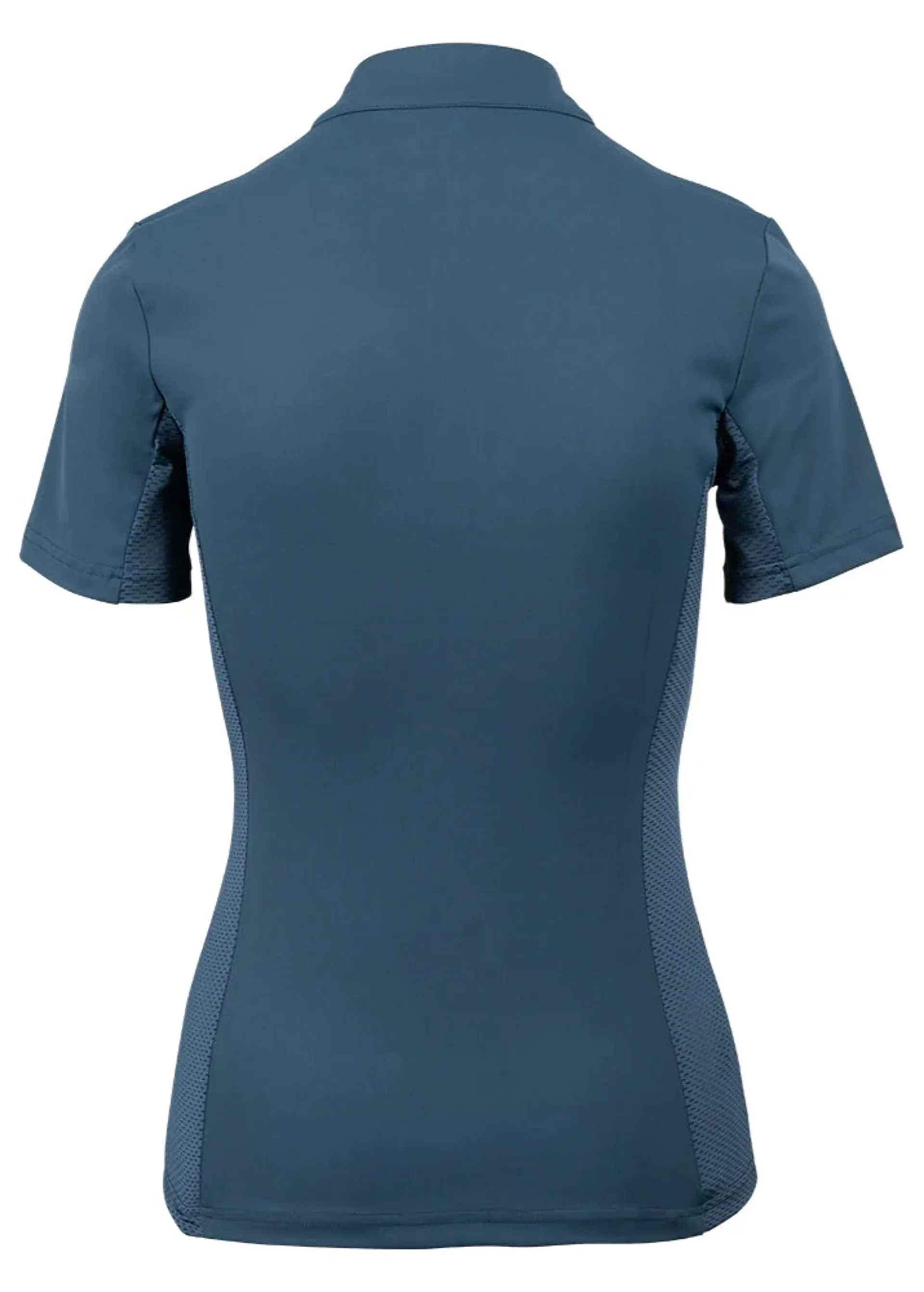Designed for riders, it features 4-way stretch for unrestricted movement and breathable mesh panels to keep you cool and comfortable on warmer days. Ideal for competition or everyday riding, this shirt offers the perfect blend of style, support, and performance—both on and off the horse.