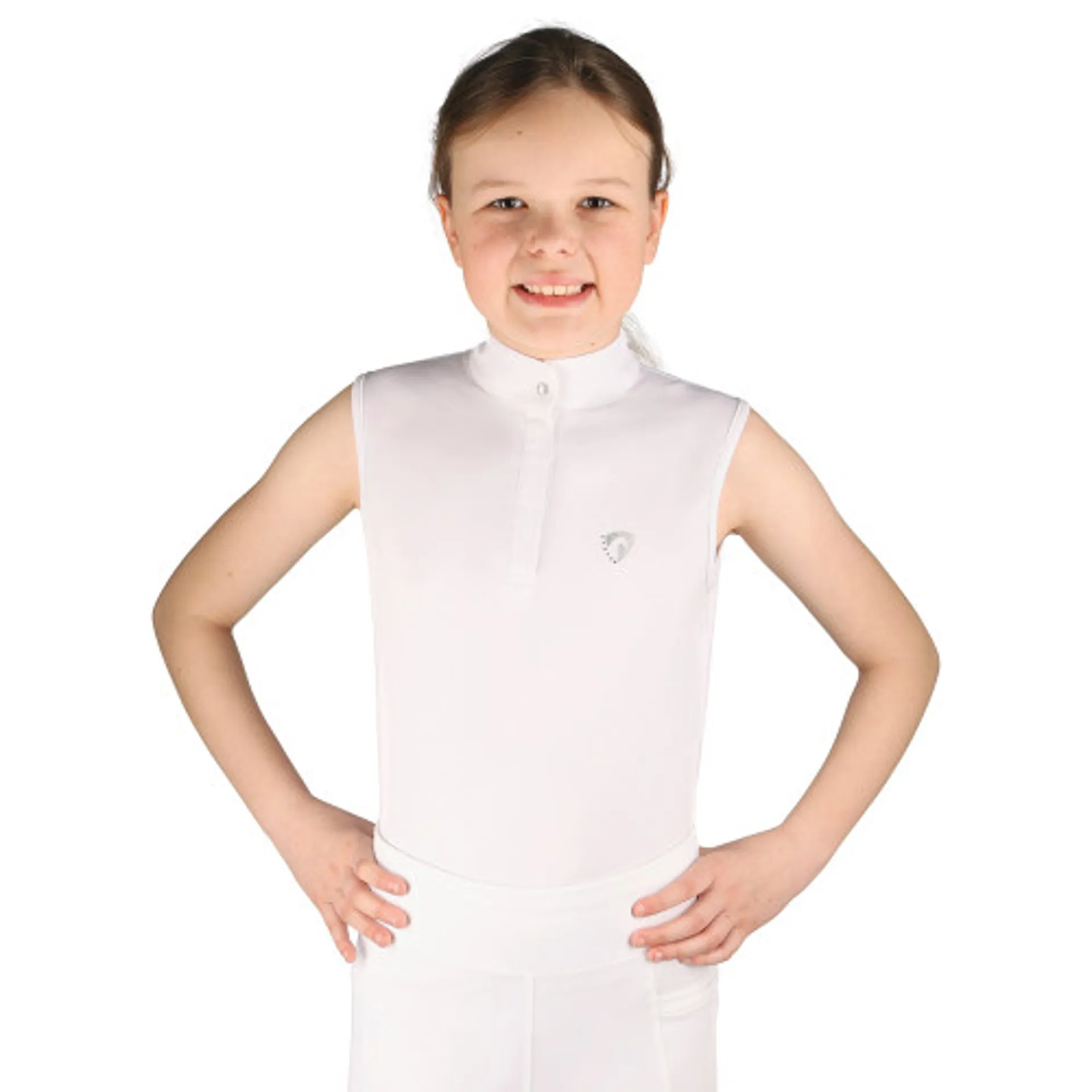 Question(s) answered about Hy Equestrian Eden Children's Sleeveless Show Shirt - White