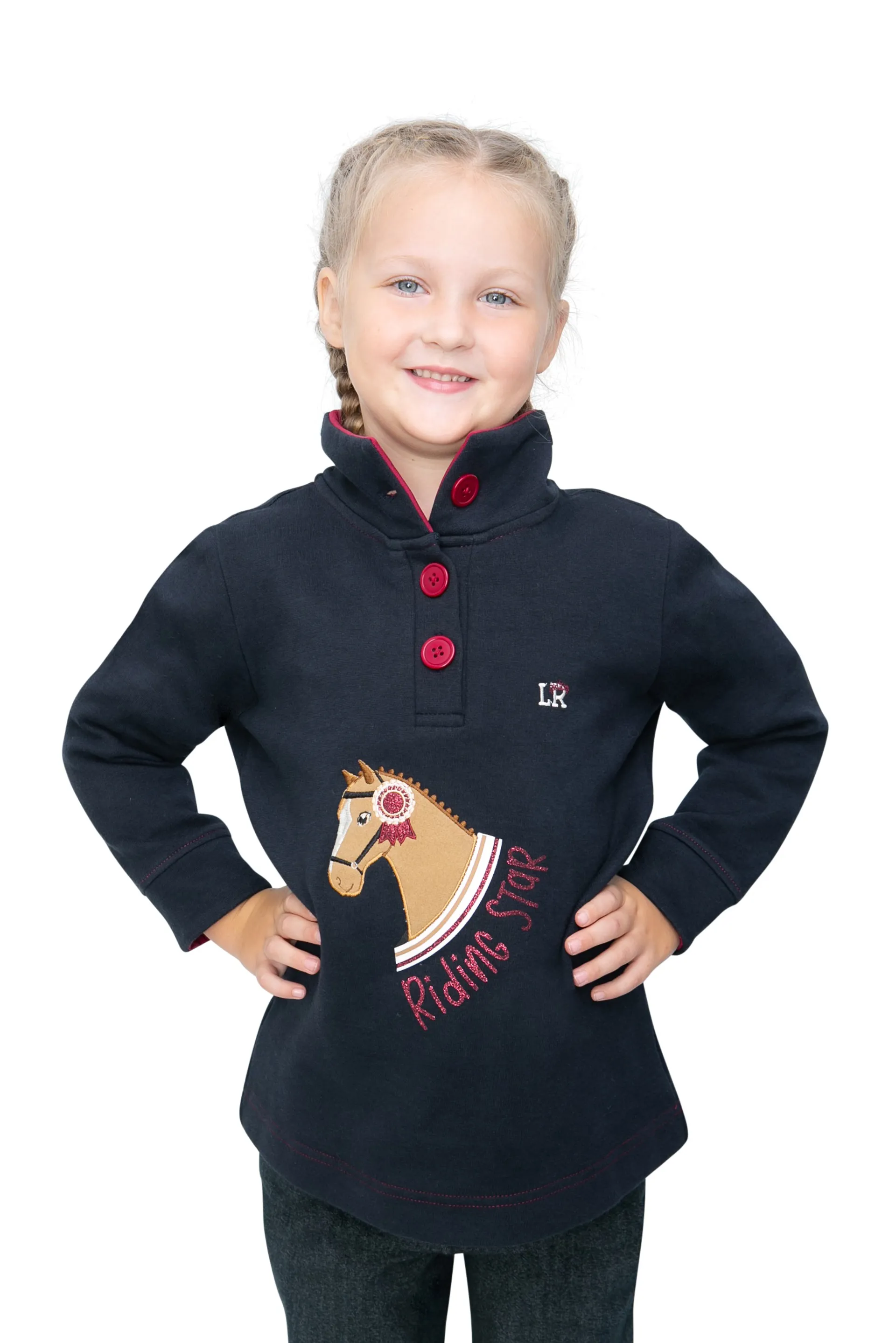 Question(s) asked regarding Hy Equestrian Riding Star Collection Jumper by Little Rider - Navy/Burgundy