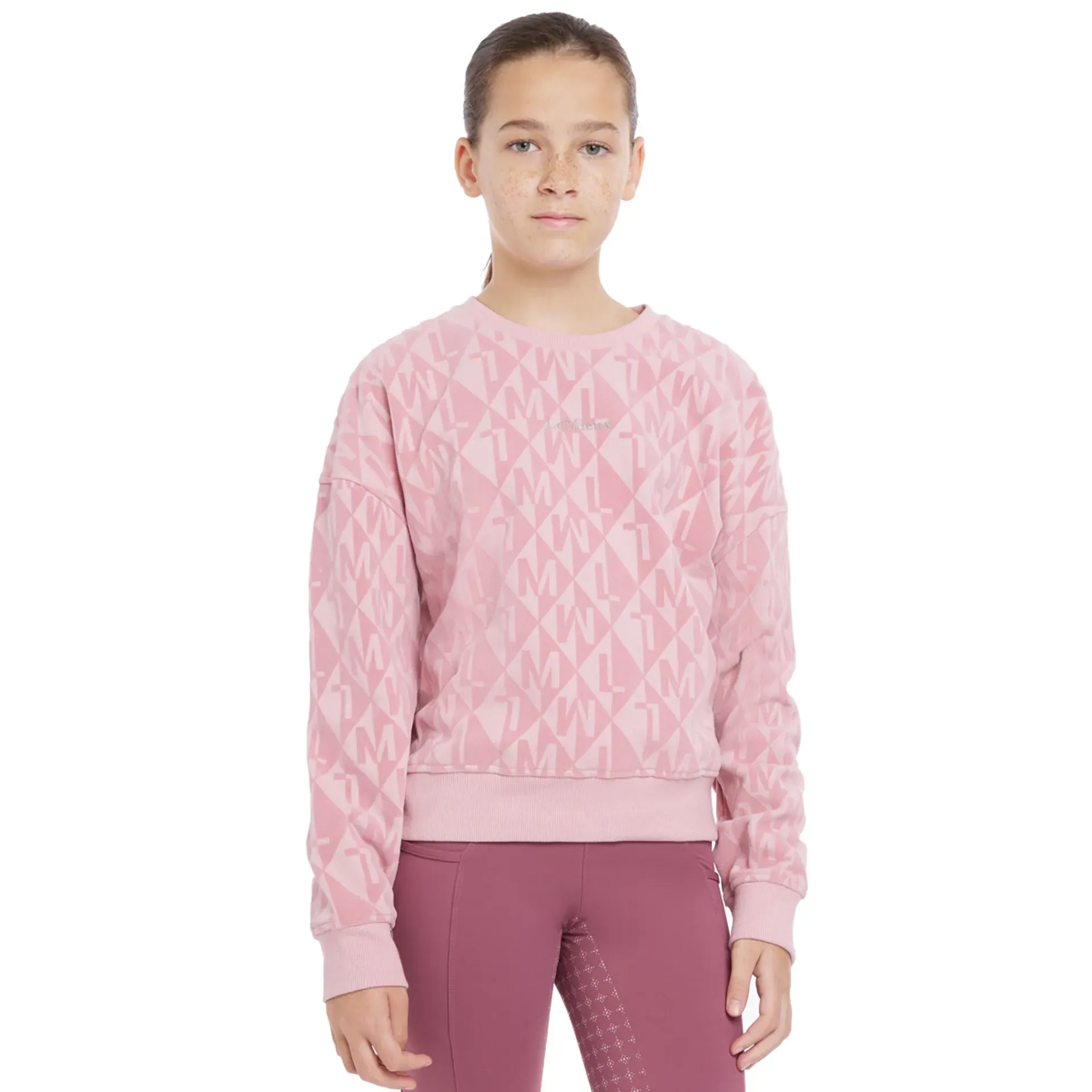 Look fabulous in this luxurious velvet-flocked diamond 'LM' monogram pattern LeMieux Young Rider Clea Crew Sweat.