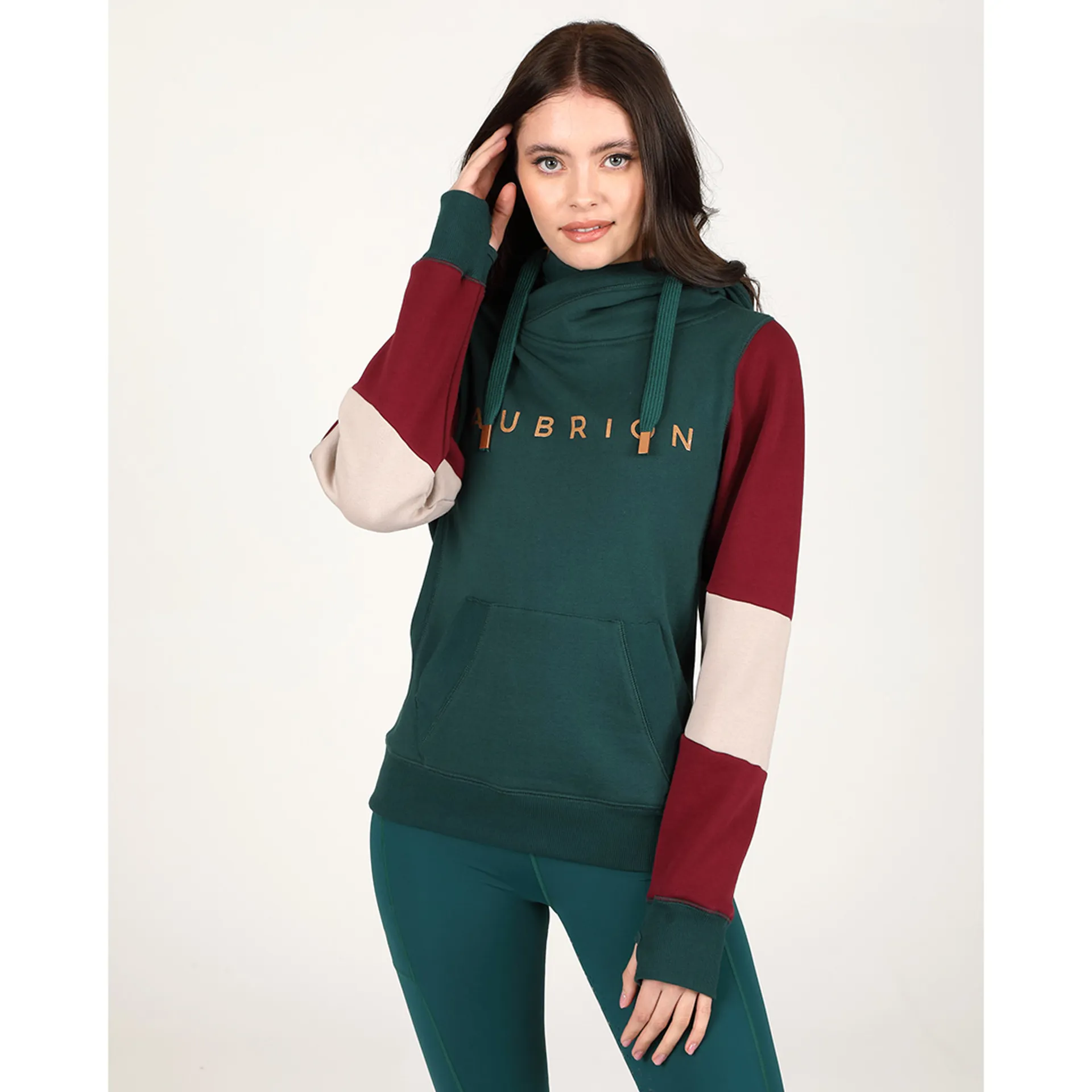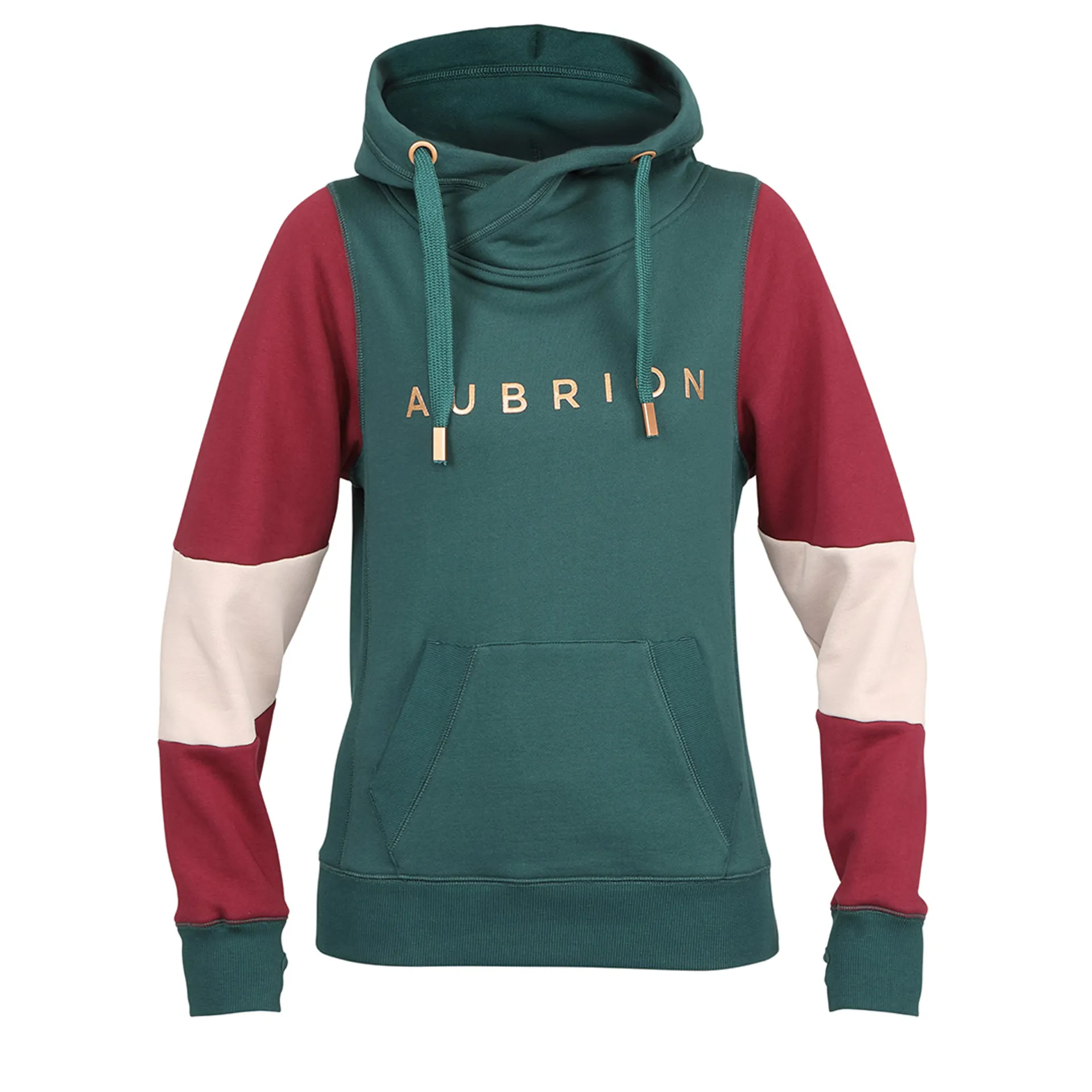 For a luxe aesthetic, the feature Aubrion chest logo is in gold, and the large hood has eyelets for the drawstring which is finished with metal hardwear.