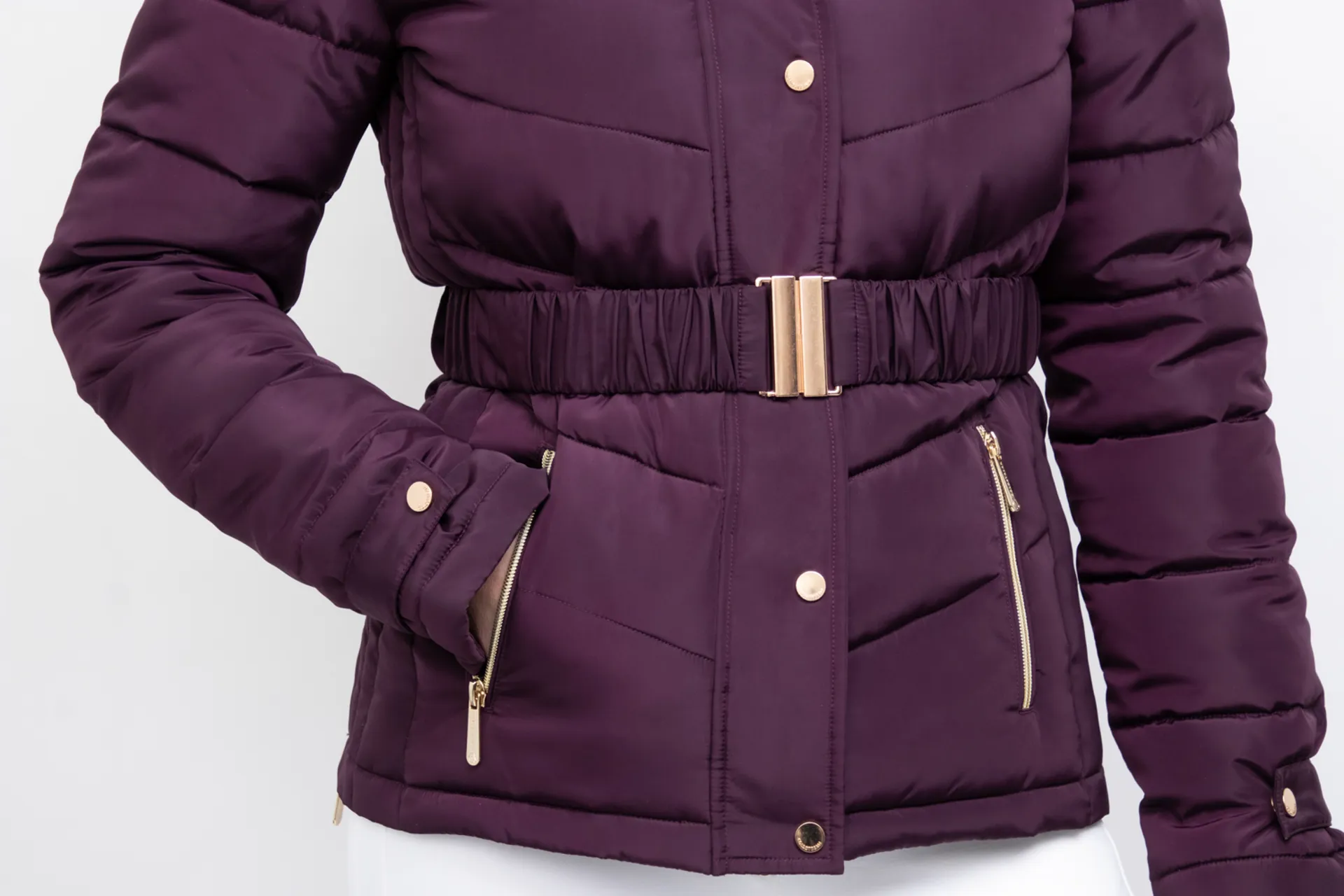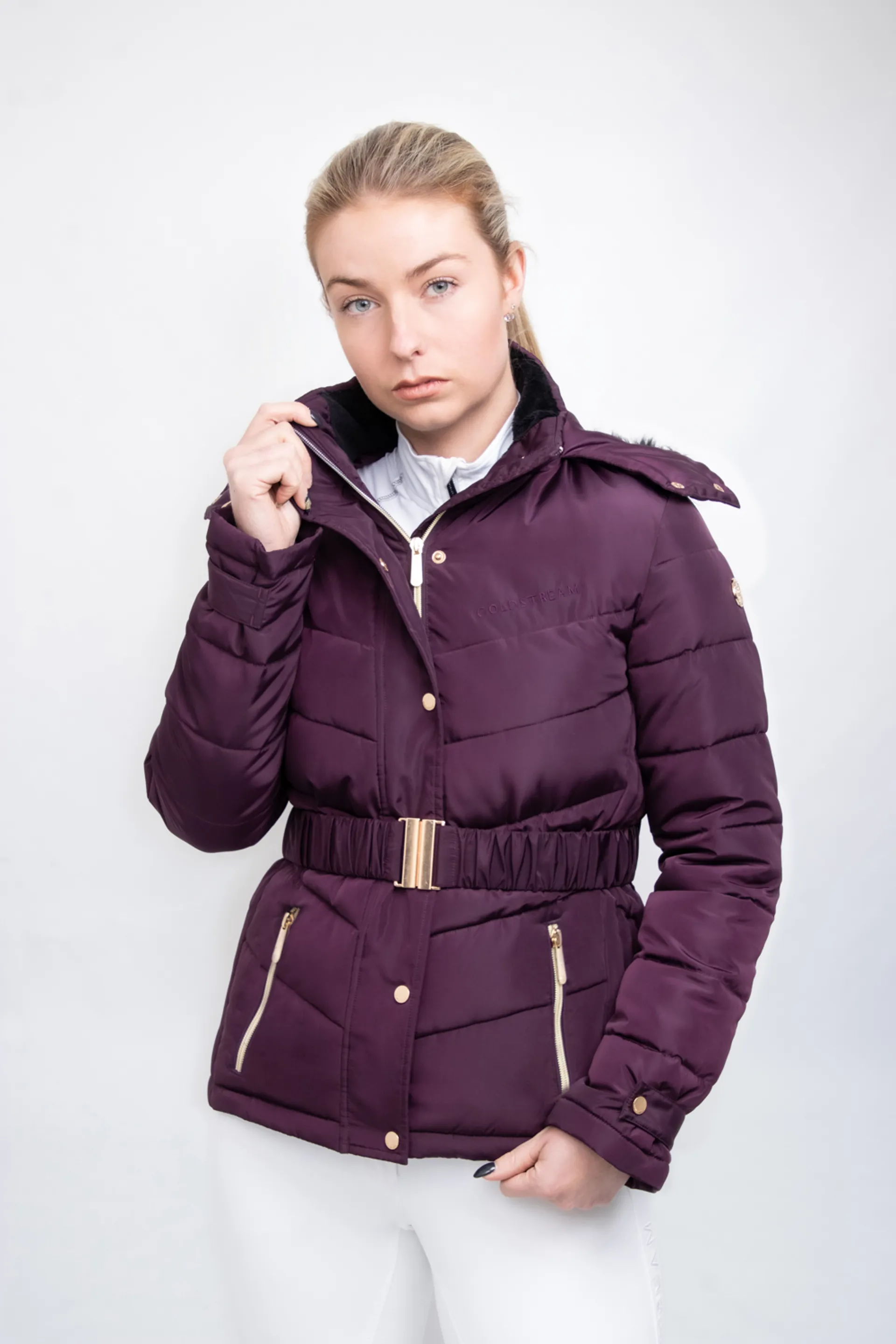 The quilted panels and premium faux fur on the collar and hood result in exceptional warmth, and the coat also features a fashionable belt around the waist for security and shaping, Coldstream detailing to the chest, collar and sleeve. Featuring gold detailing to the zips and buttons for a classy finish.