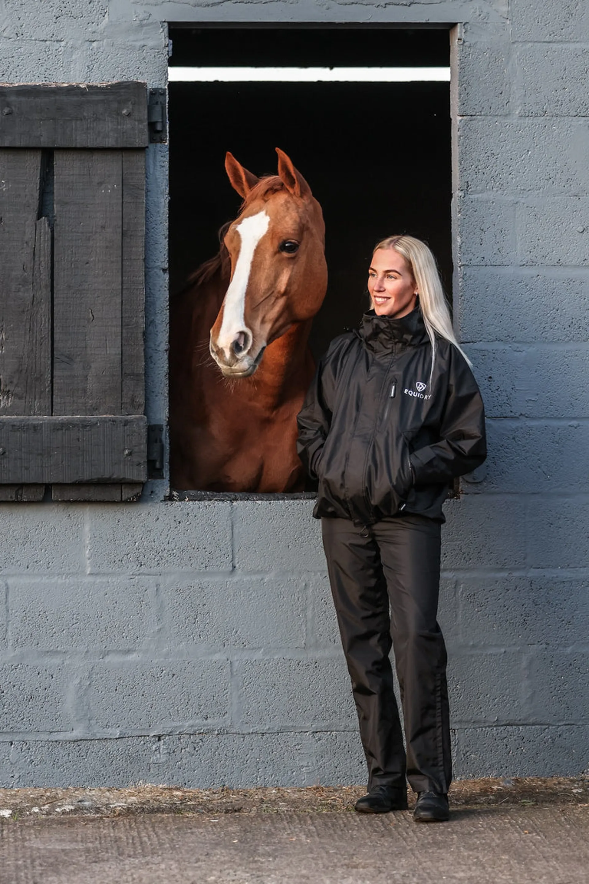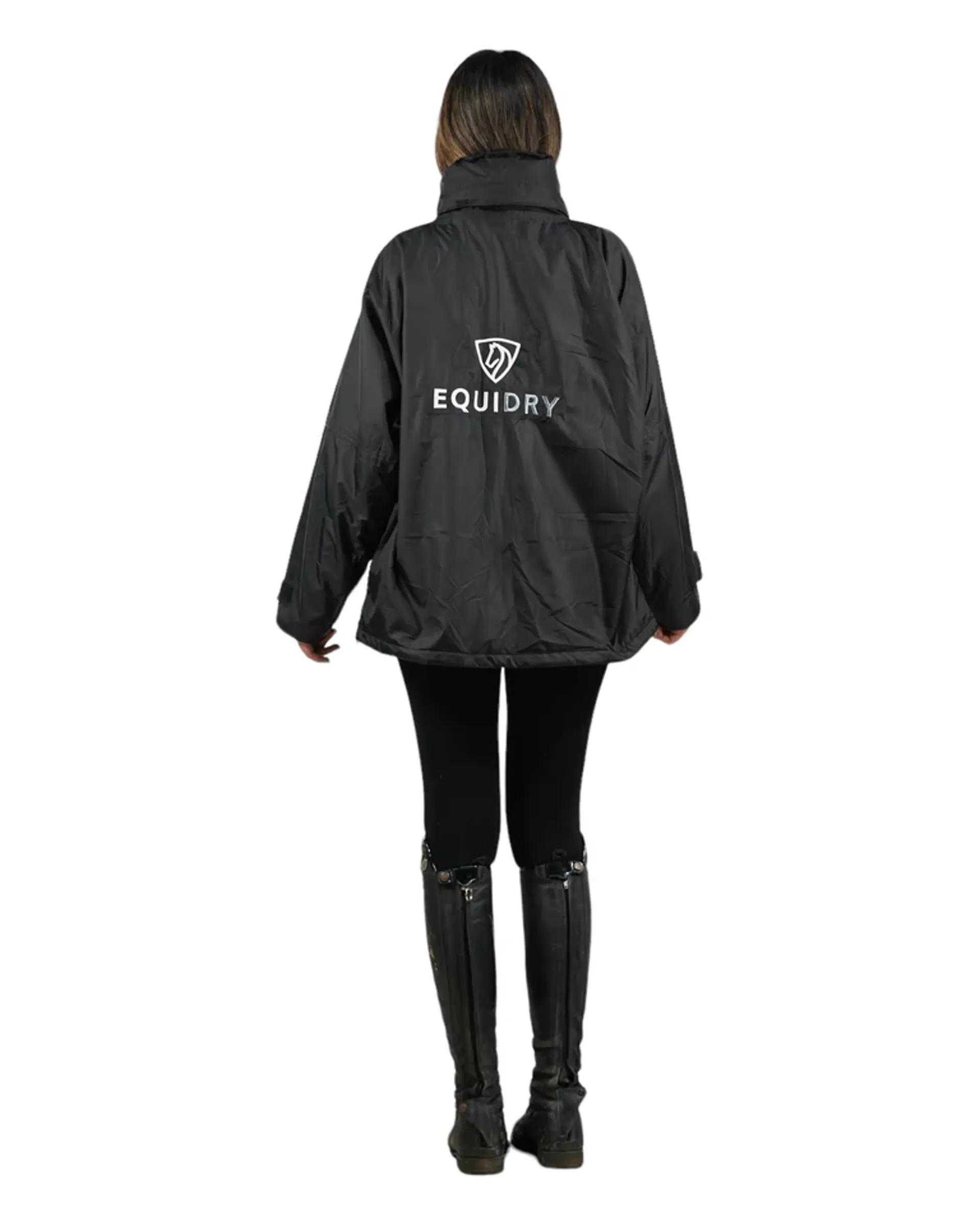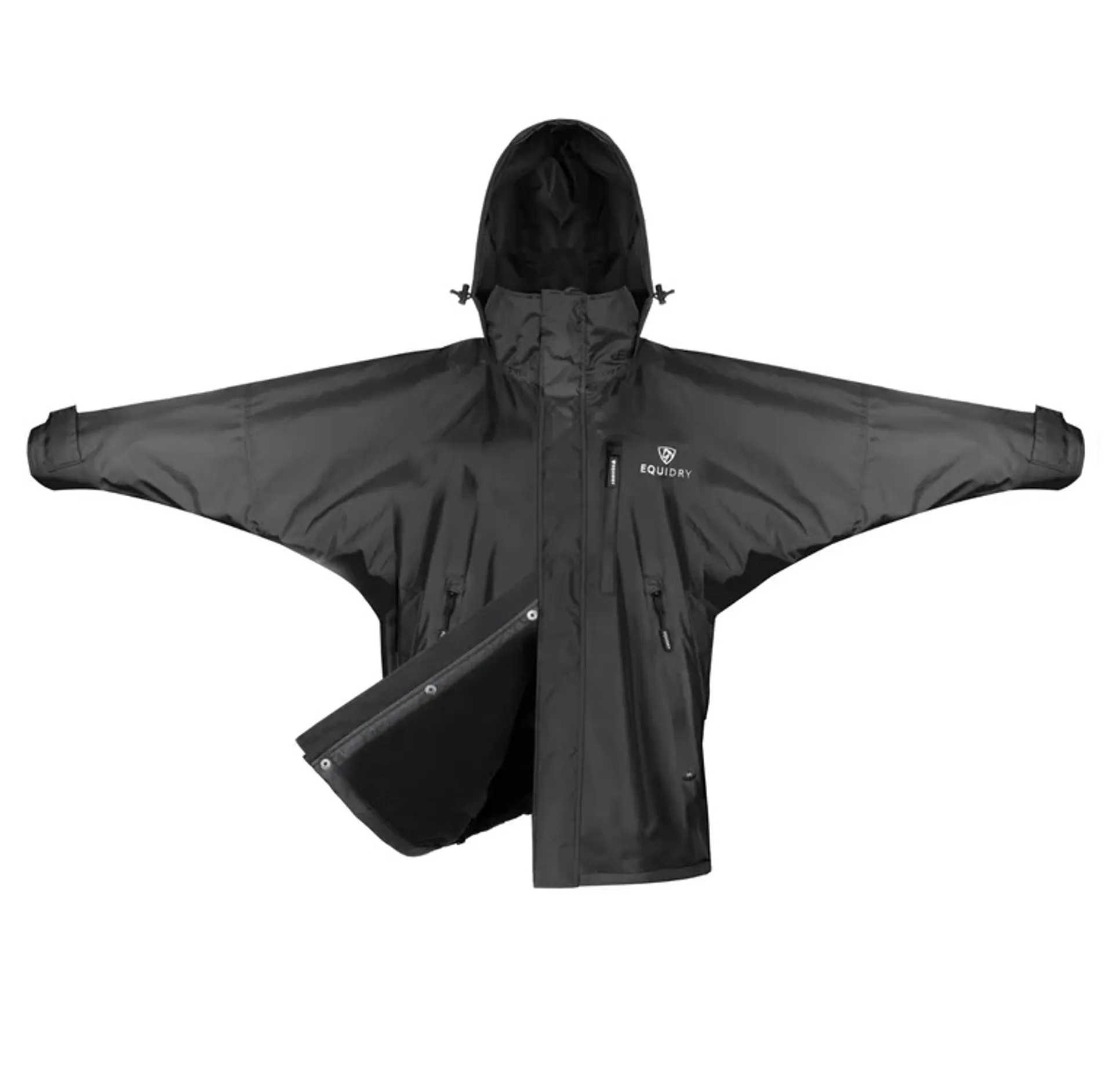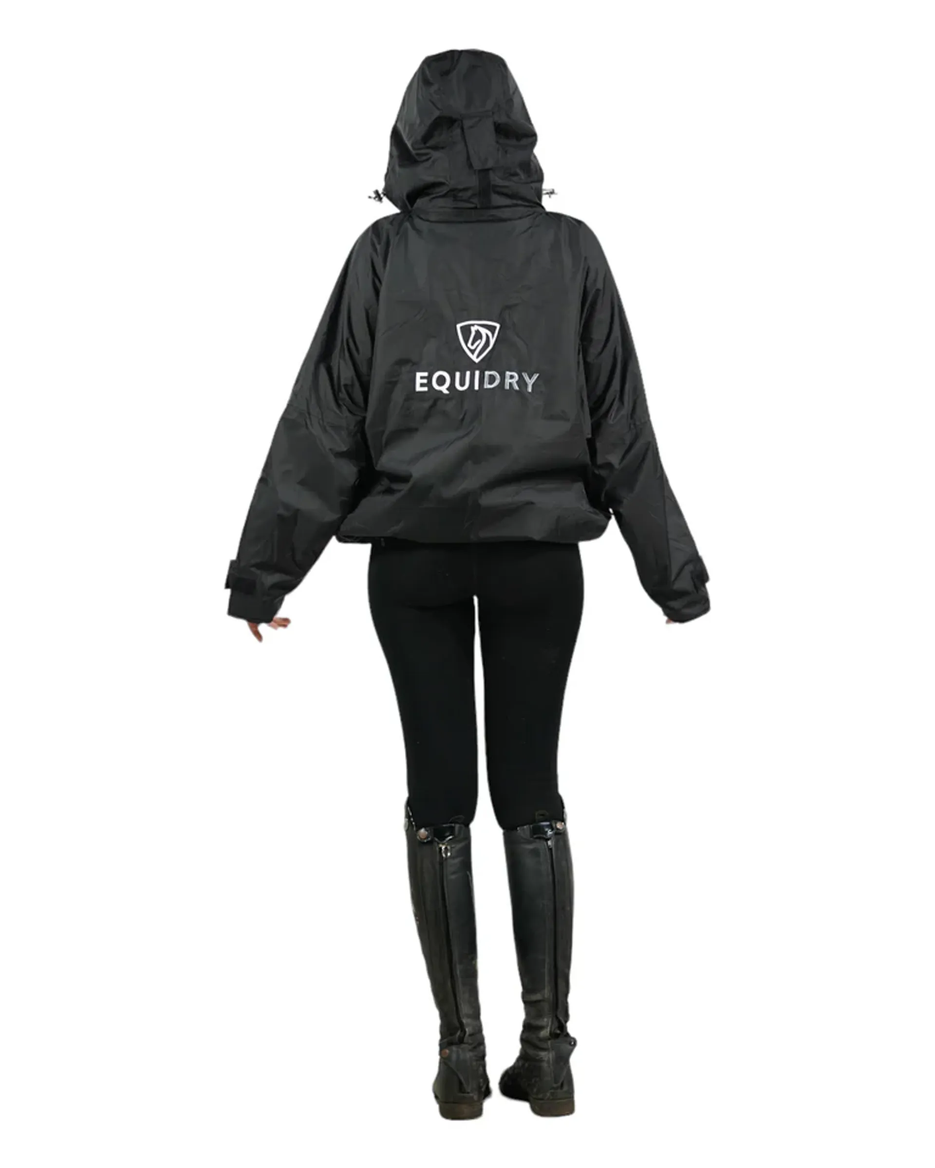 Question(s) answered about EQUIDRY Shortie Adults Jacket with Stowaway Hood - Black/Black