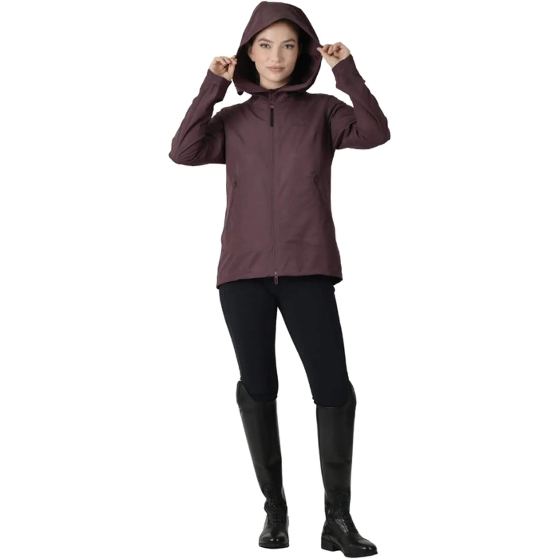 Whether you're perfecting dressage in the arena or out hacking, this jacket moves effortlessly with you thanks to its 4-way stretch fabric and tailored fit. Its showerproof material ensures light rain won’t stand in your way, and when the clouds disappear, you can pack it neatly into its own pocket for easy storage. With thoughtful design details like a helmet-ready hood, adjustable ventilation, and reflective accents, you'll feel confident, comfortable, and safe at all times.