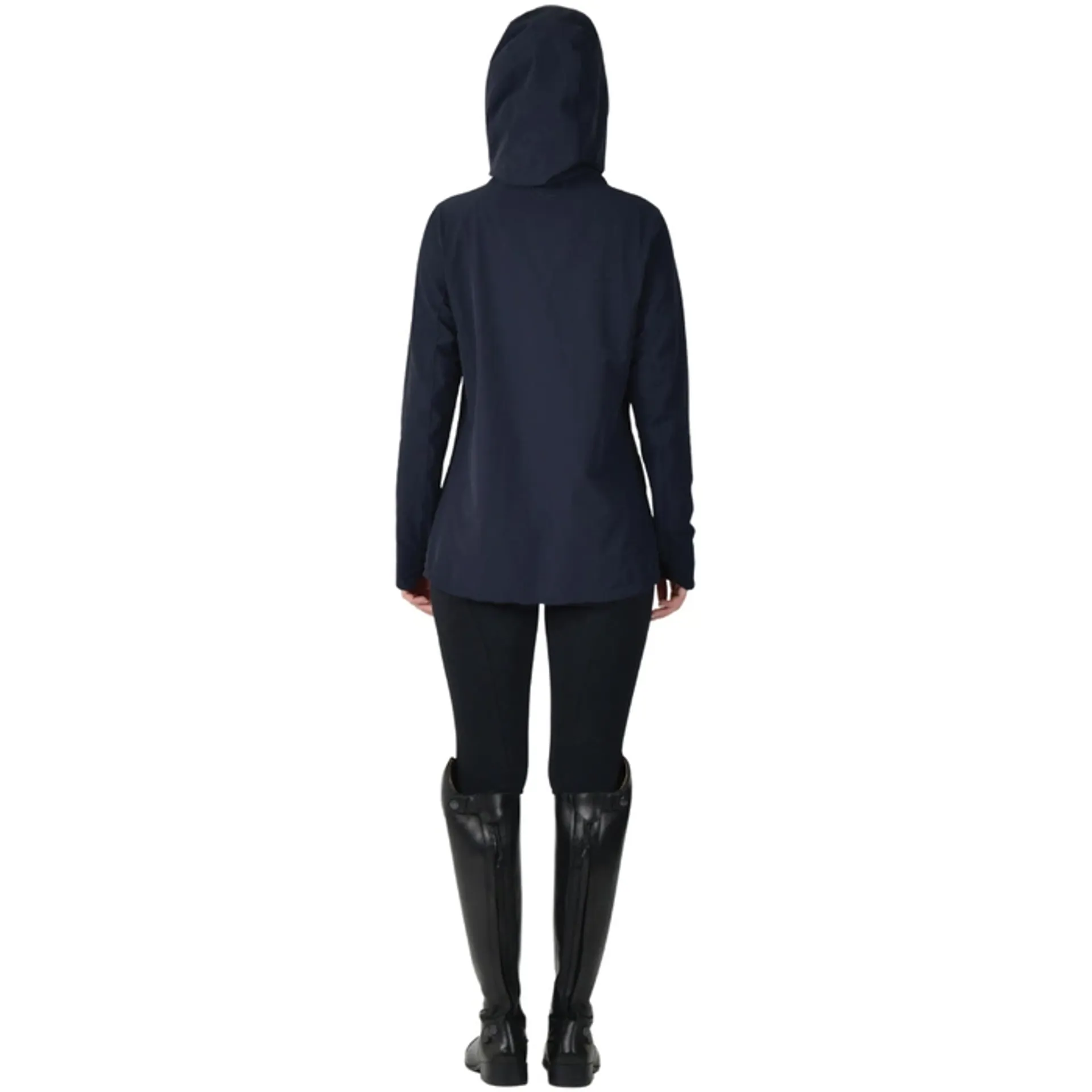 Whether you're perfecting dressage in the arena or out hacking, this jacket moves effortlessly with you thanks to its 4-way stretch fabric and tailored fit. Its showerproof material ensures light rain won’t stand in your way, and when the clouds disappear, you can pack it neatly into its own pocket for easy storage. With thoughtful design details like a helmet-ready hood, adjustable ventilation, and reflective accents, you'll feel confident, comfortable, and safe at all times.
