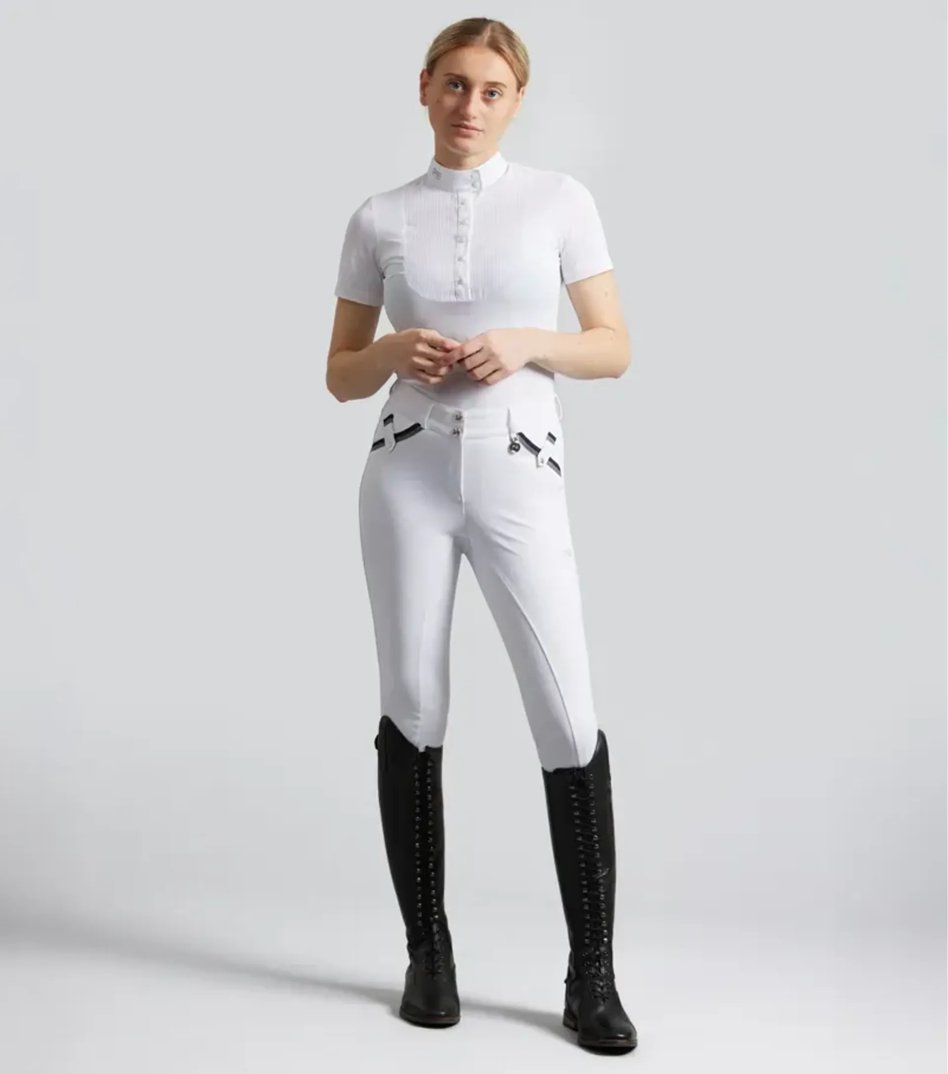 Part of the black label collection, these ladies competition breeches deliver a luxurious combination of high performance functionality and sophisticated style.