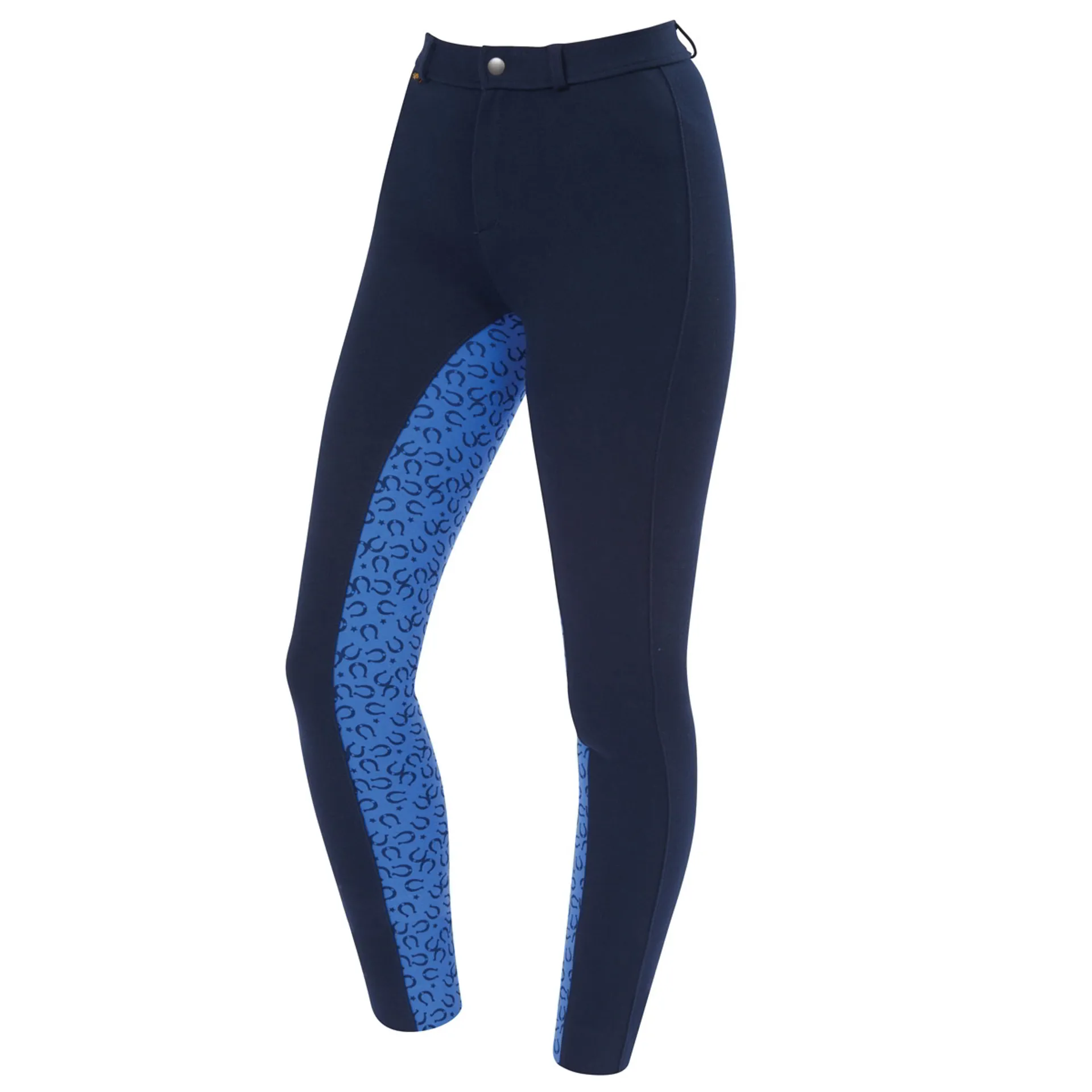 Saxon Warm Up Cotton Euro Seat Child's Jodhpurs - Navy/Blue Horseshoe