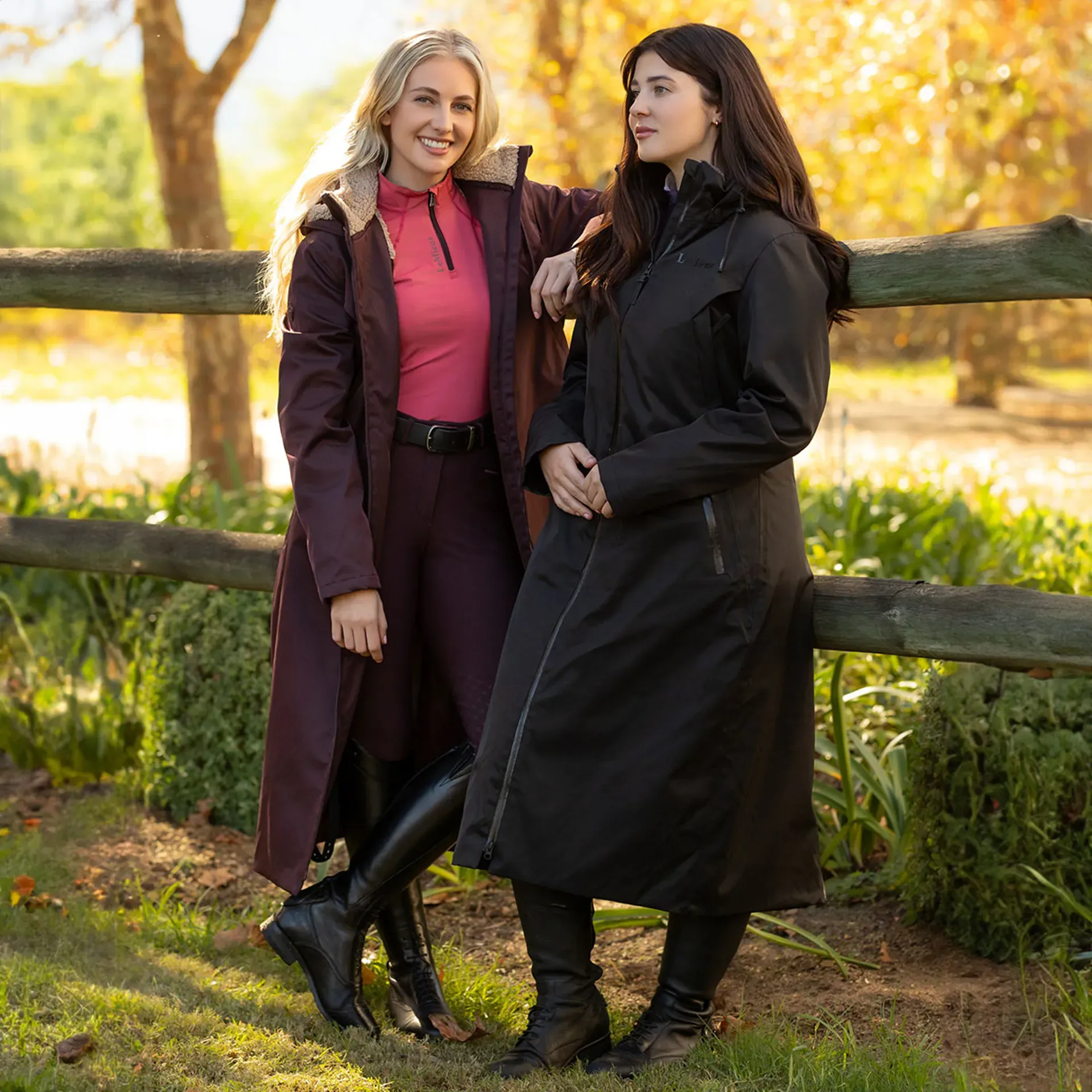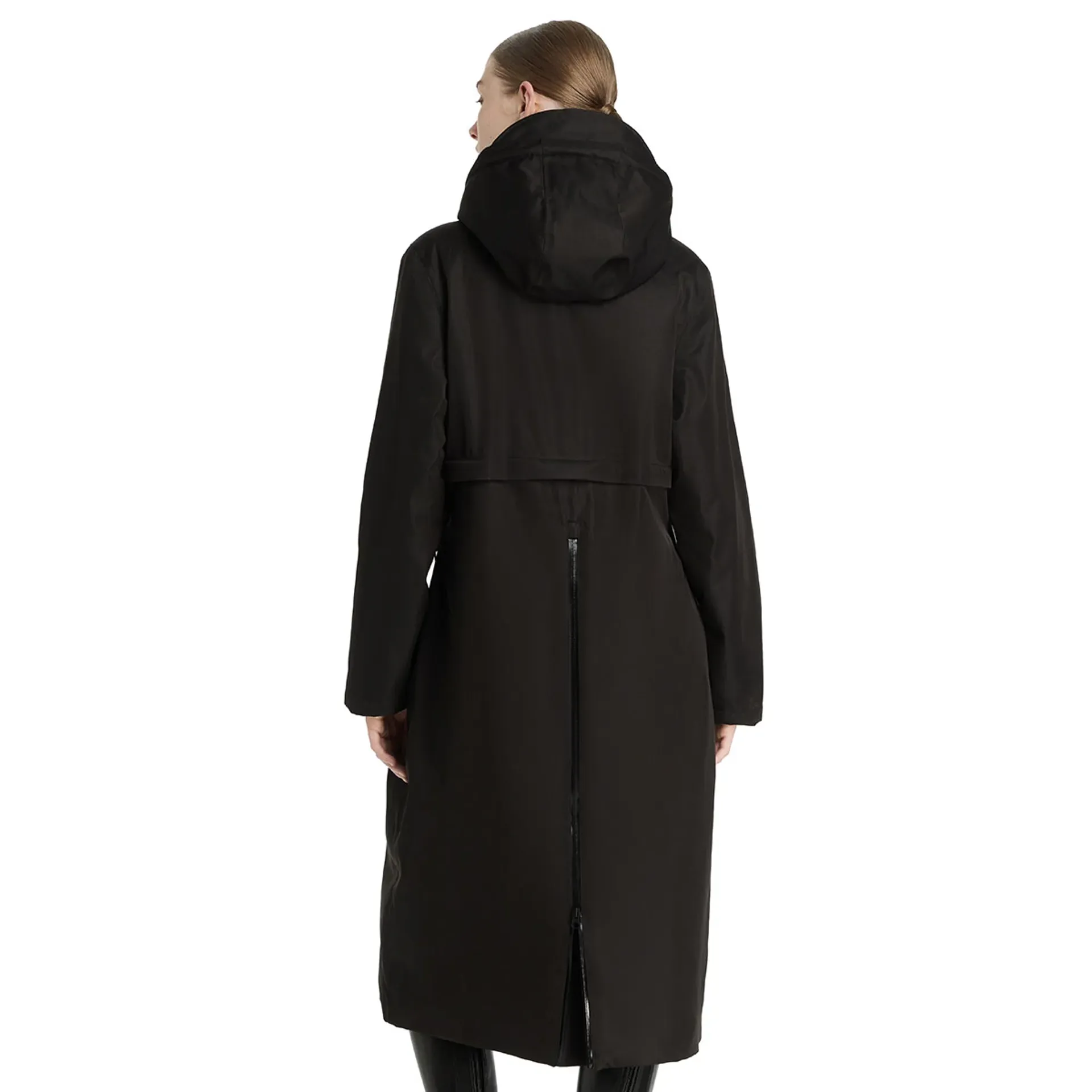 A two-way front zip gives you flexibility, while the back hem vent allows for fitting over the saddle. The PFC-free waterproof twill fabric is stylish yet practical, perfect for life with horses.