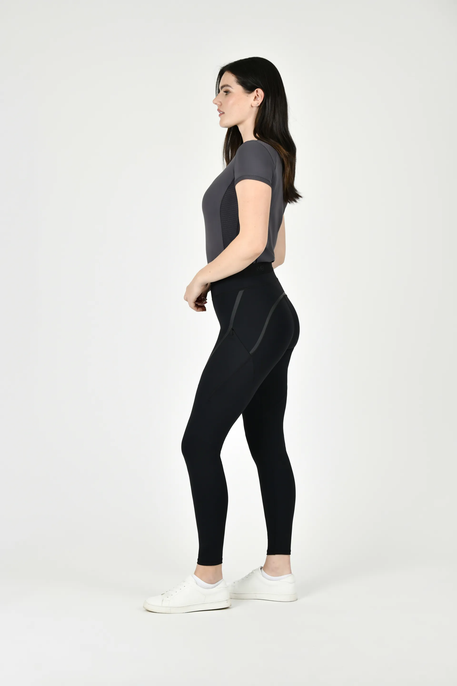 Featuring a mid/high rise with elastic peek waistband for a stylish effect without compromising on security, comfort, and support, large hidden zip side phone pockets and full grip silicone detail, 4-way stretch and UPF 50+ sun protection with reflective trims for 360-degree visibility.