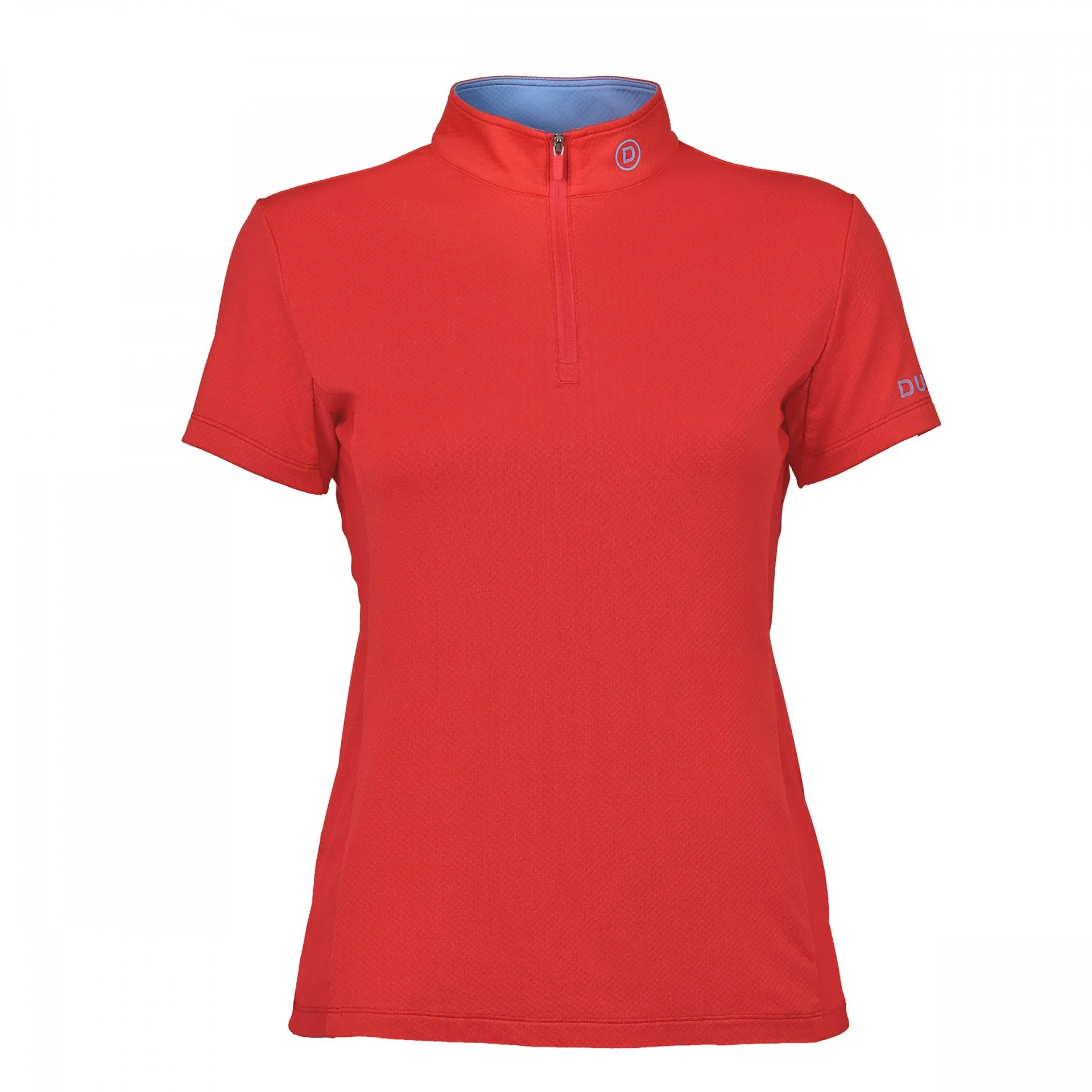 Comfort dry technology fabric that provides moisture control for all day comfort. Mesh underarm panels for ventilation. 1/4 zip through placket and self fabric stand up collar.