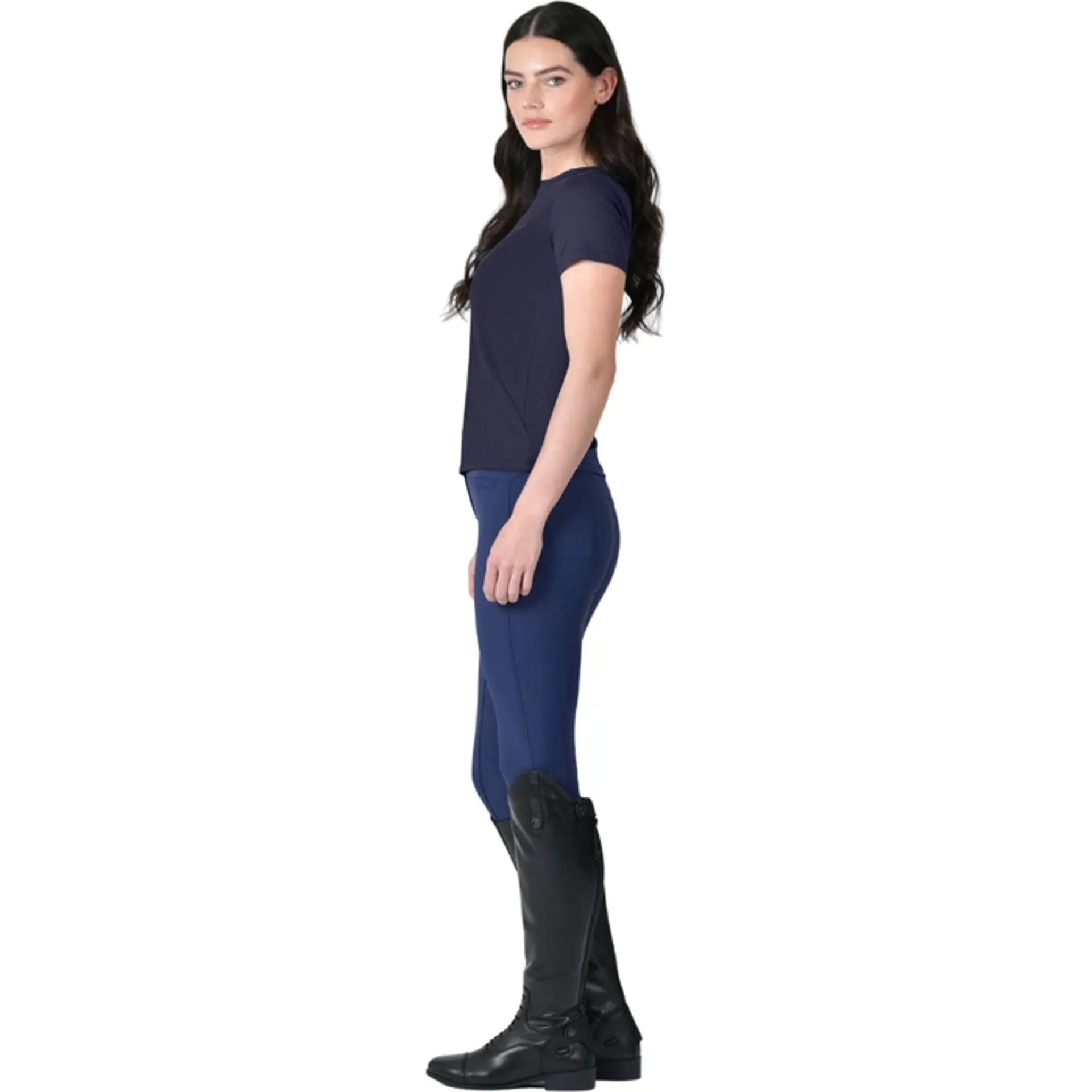 Perfect for equestrians who demand both performance and elegance, this tee combines UV protection, antibacterial technology, and quick-dry fabric to keep you cool, fresh, and comfortable in and out of the saddle. Its lightweight stretch polyester blend offers effortless movement, while narrow sleeve openings provide a secure, distraction-free fit.