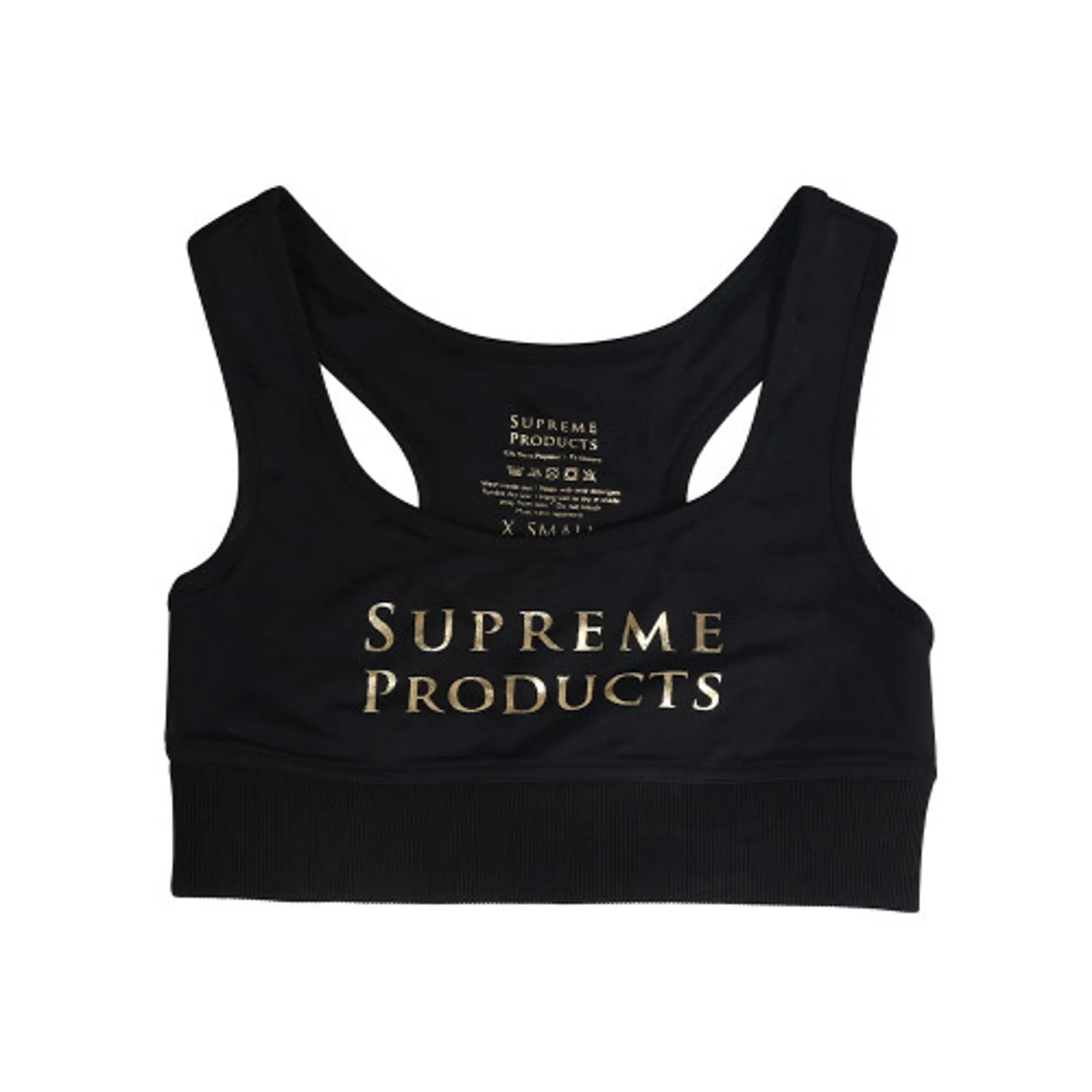 Question(s) asked regarding Supreme Products Active Show Rider Sports Bra - Black/Gold
