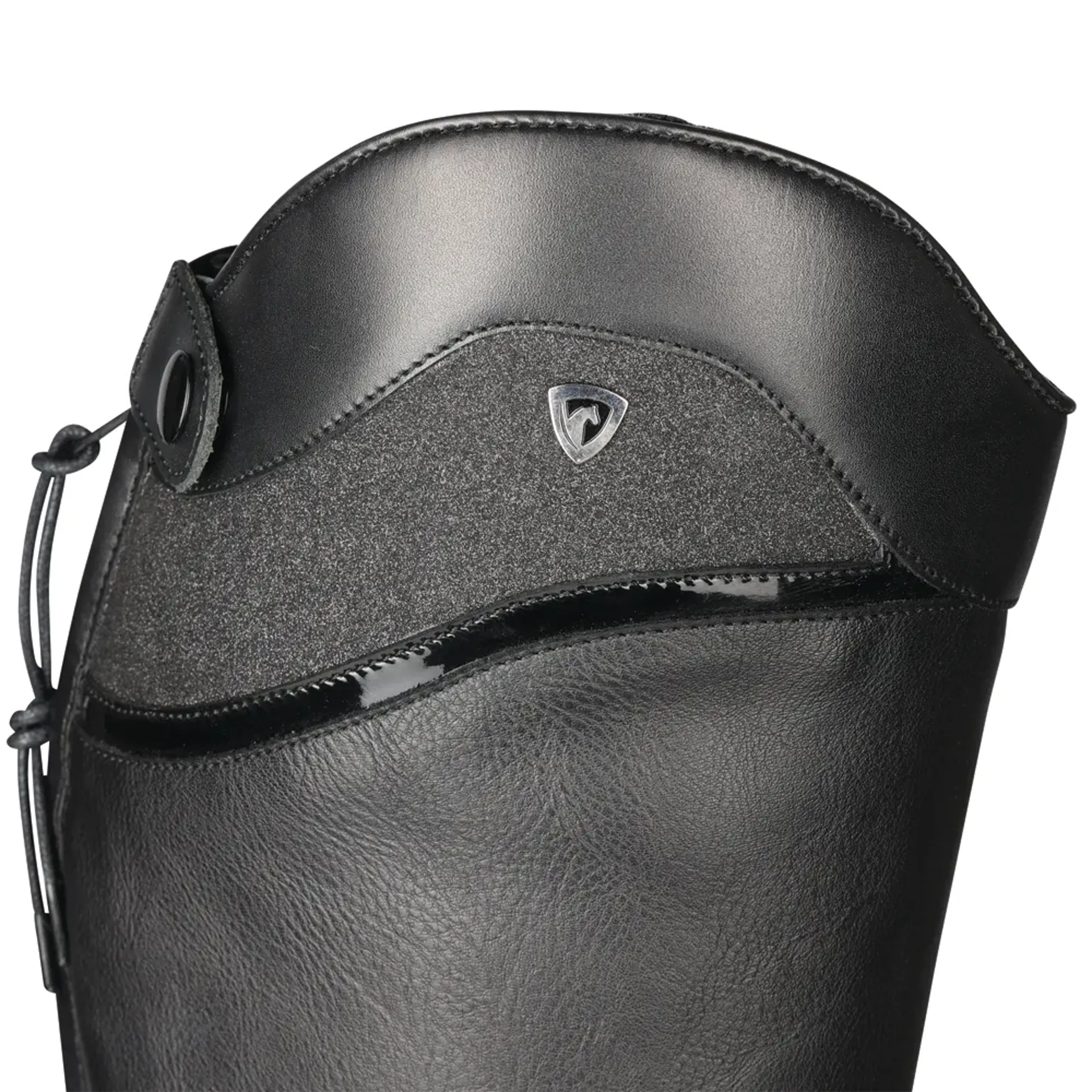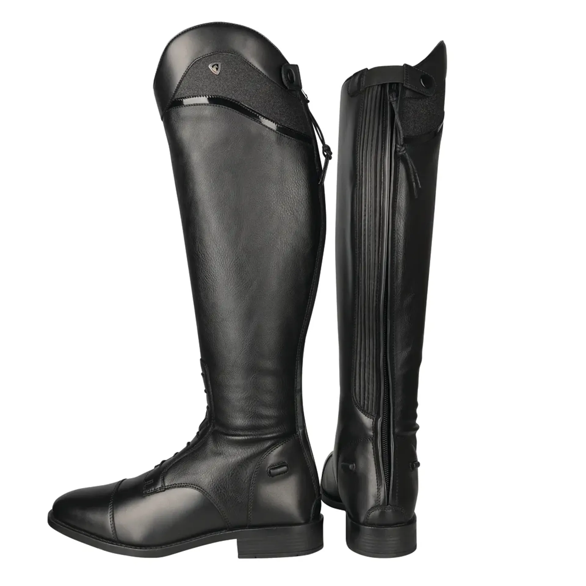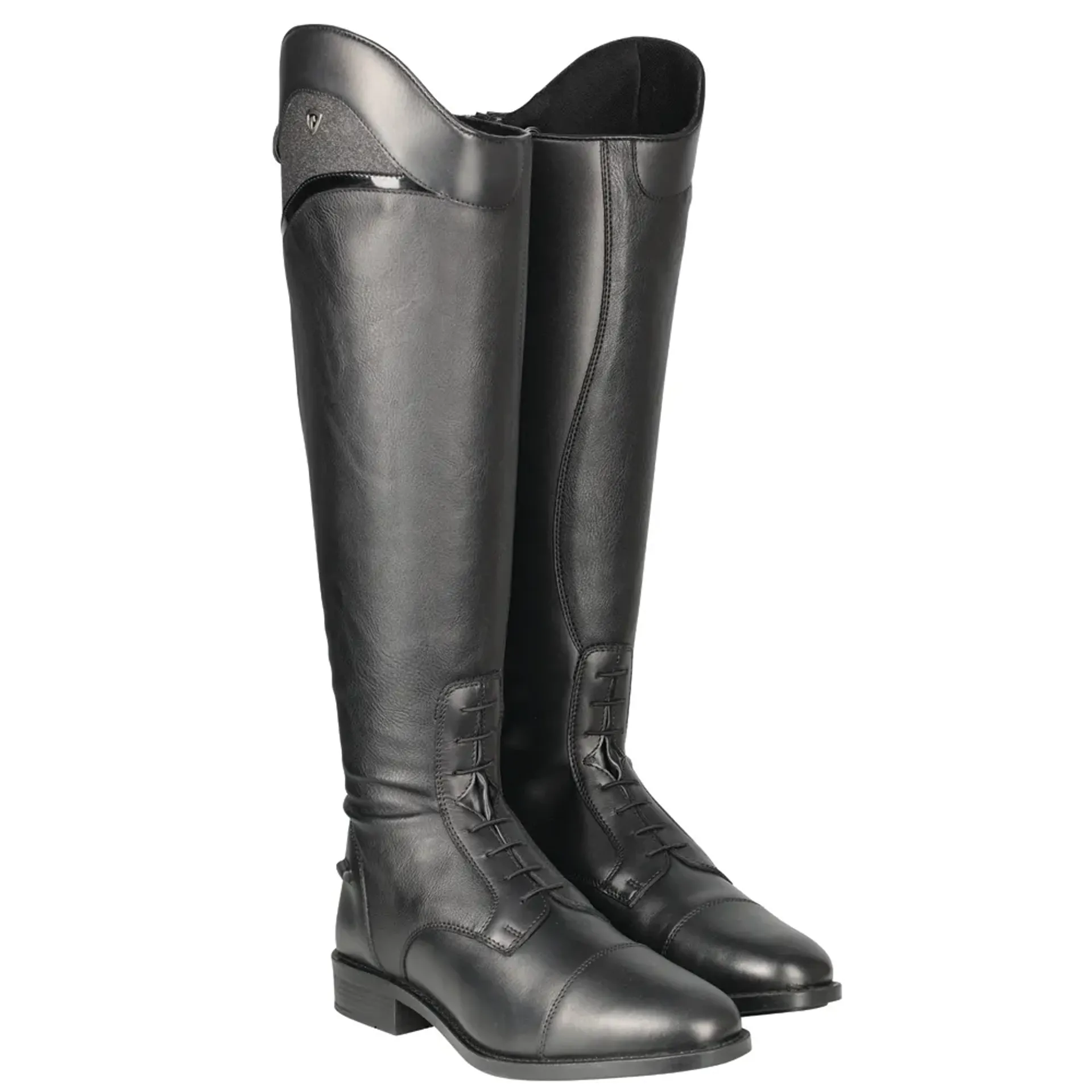 Smart and sophisticated - the Hy Equestrian Atrani Ladies Riding Boot is a traditional field boot with the addition of a shaped shimmer panel and patent strip.