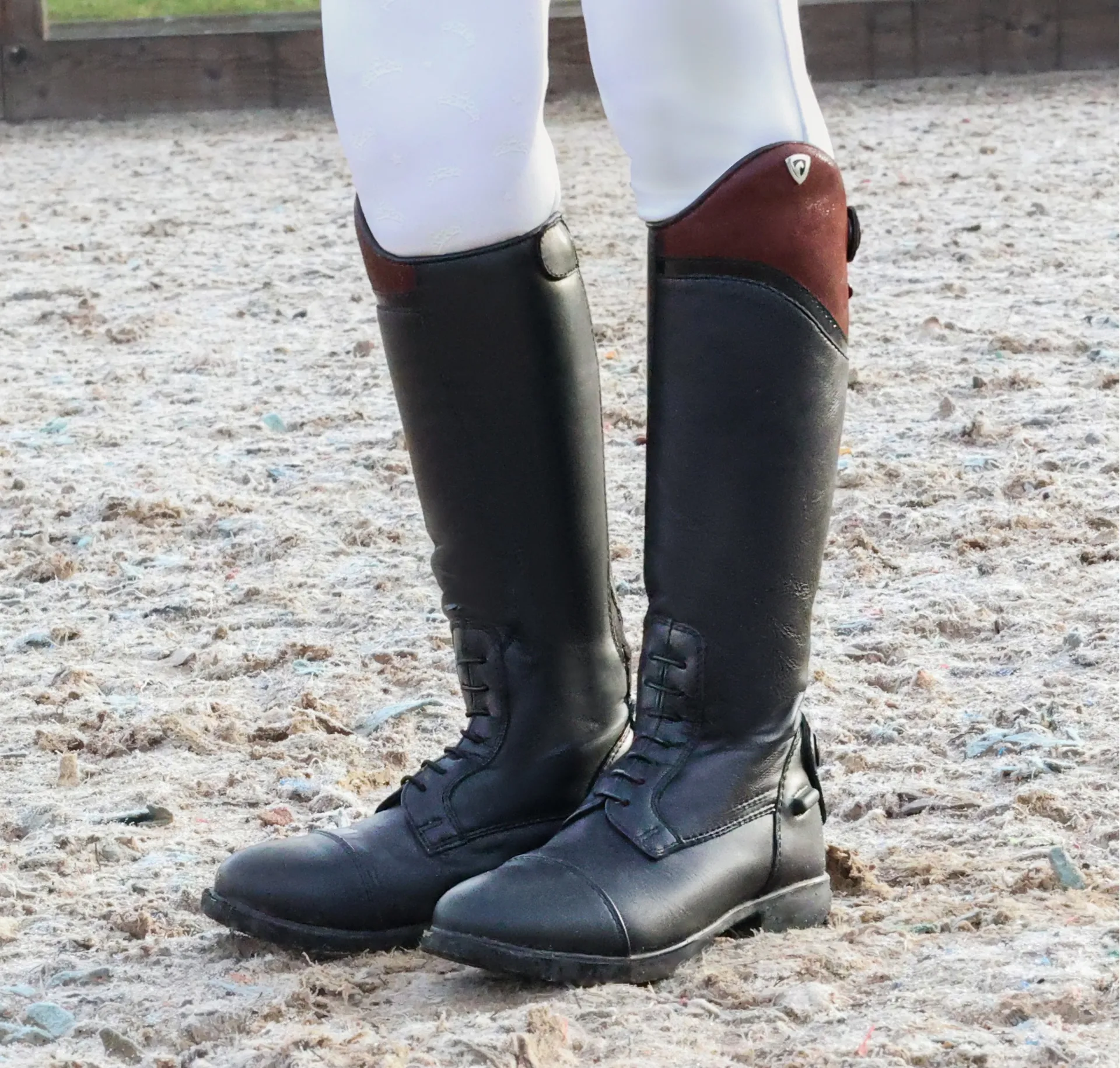 Featuring lace fronts for the classic finish, but with the addition of a mottled panel at the top of the boot that will sparkle in the light. With an elasticated back panel for superior comfort, ease of fastening and close contact feel and sturdy zip fastening with secure top press stud closure. Including spur rests to the heel, spur guard at the bottom of the boot and durable anti-skid sole for stability.