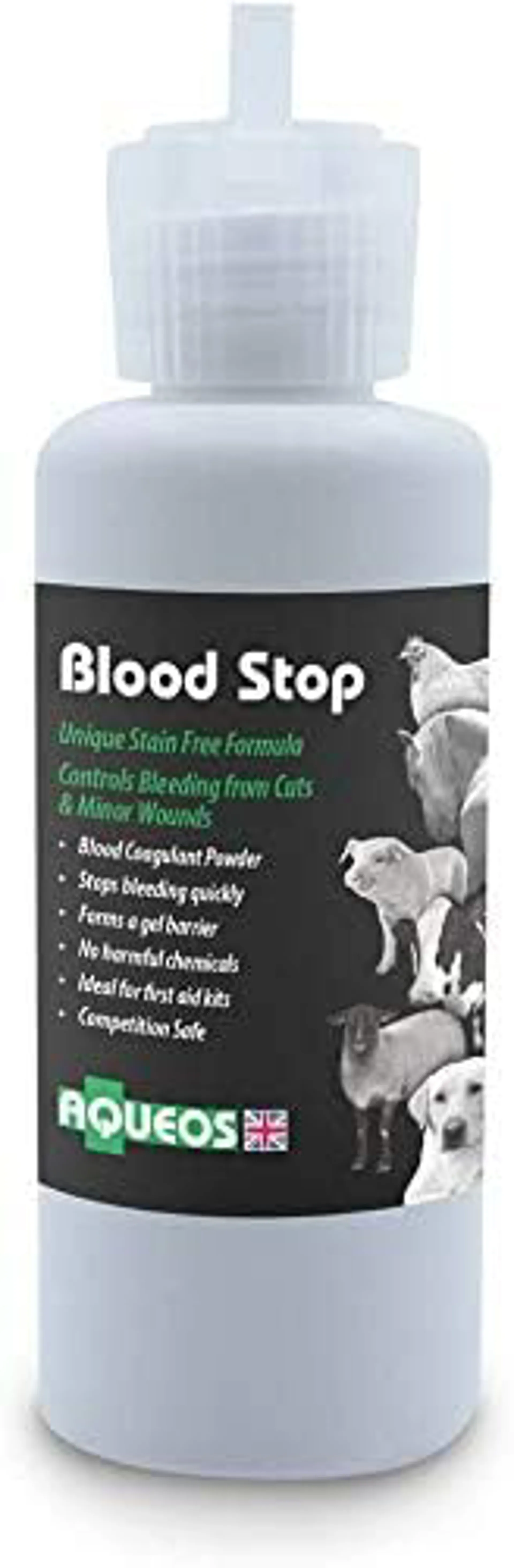 The Aqueos Blood Stop is a coagulate powder that stops bleeding by forming a gel when in contact with the blood, creating a gel barrier that stems the bleed.