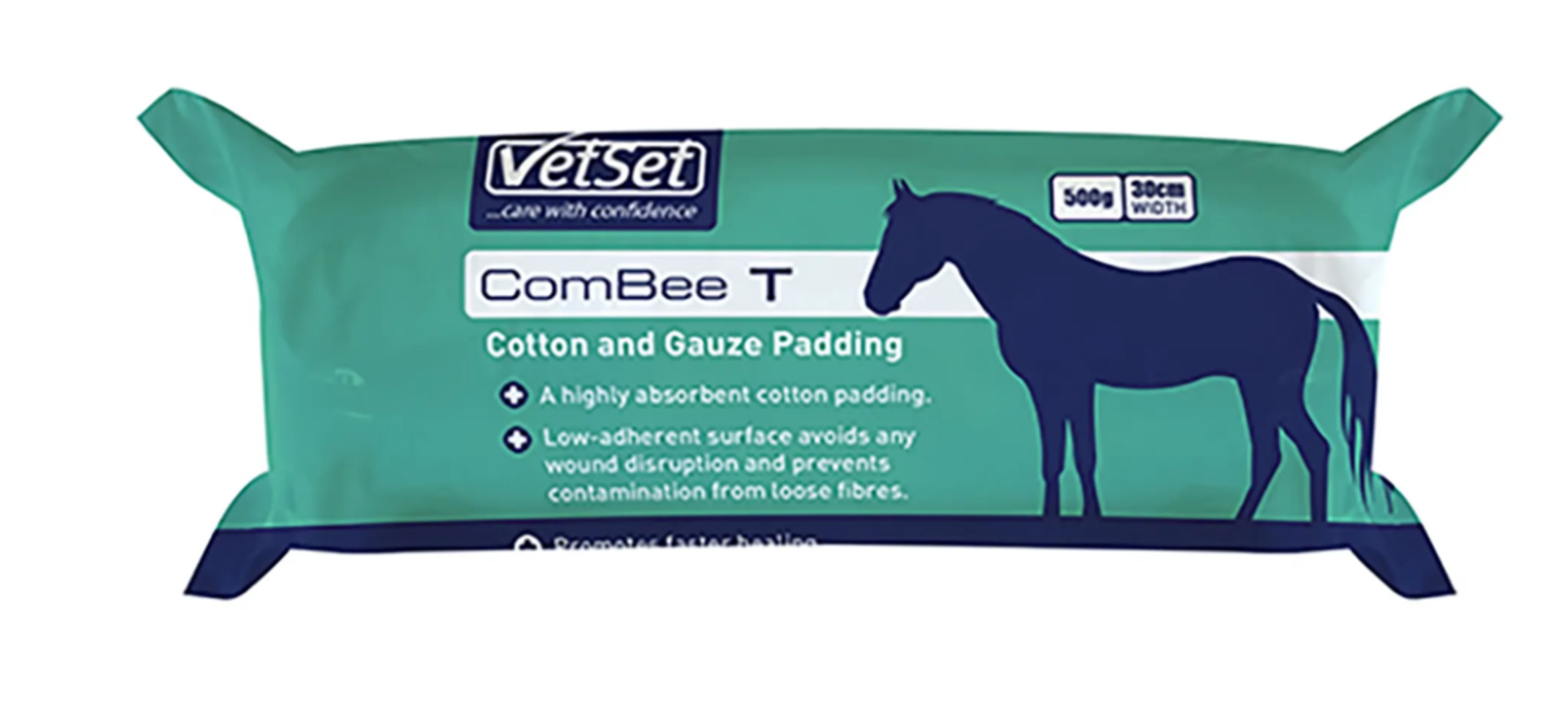 VetSet ComBee T is a highly absorbent, medical-grade cotton padding covered in gauze, designed to protect and cushion wounds while supporting healing.
