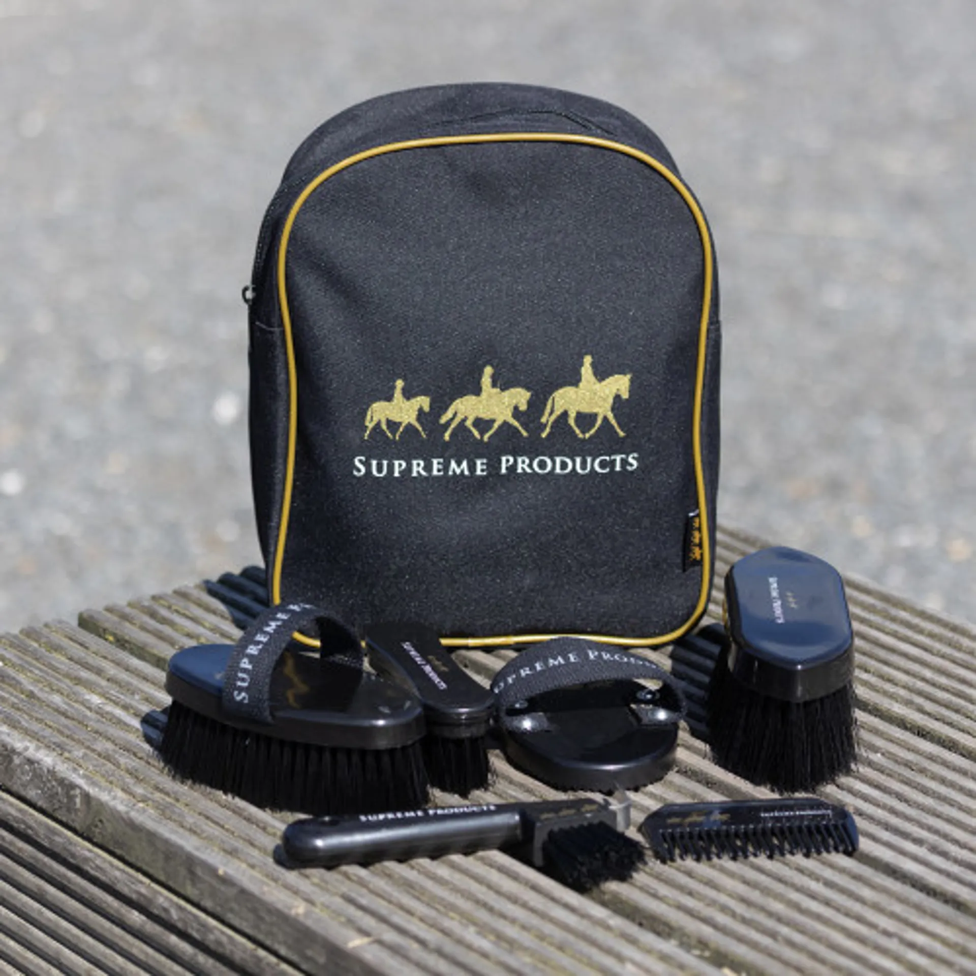 Question(s) asked regarding Supreme Products Pampered Pony Complete Grooming Rucksack - Black/Gold