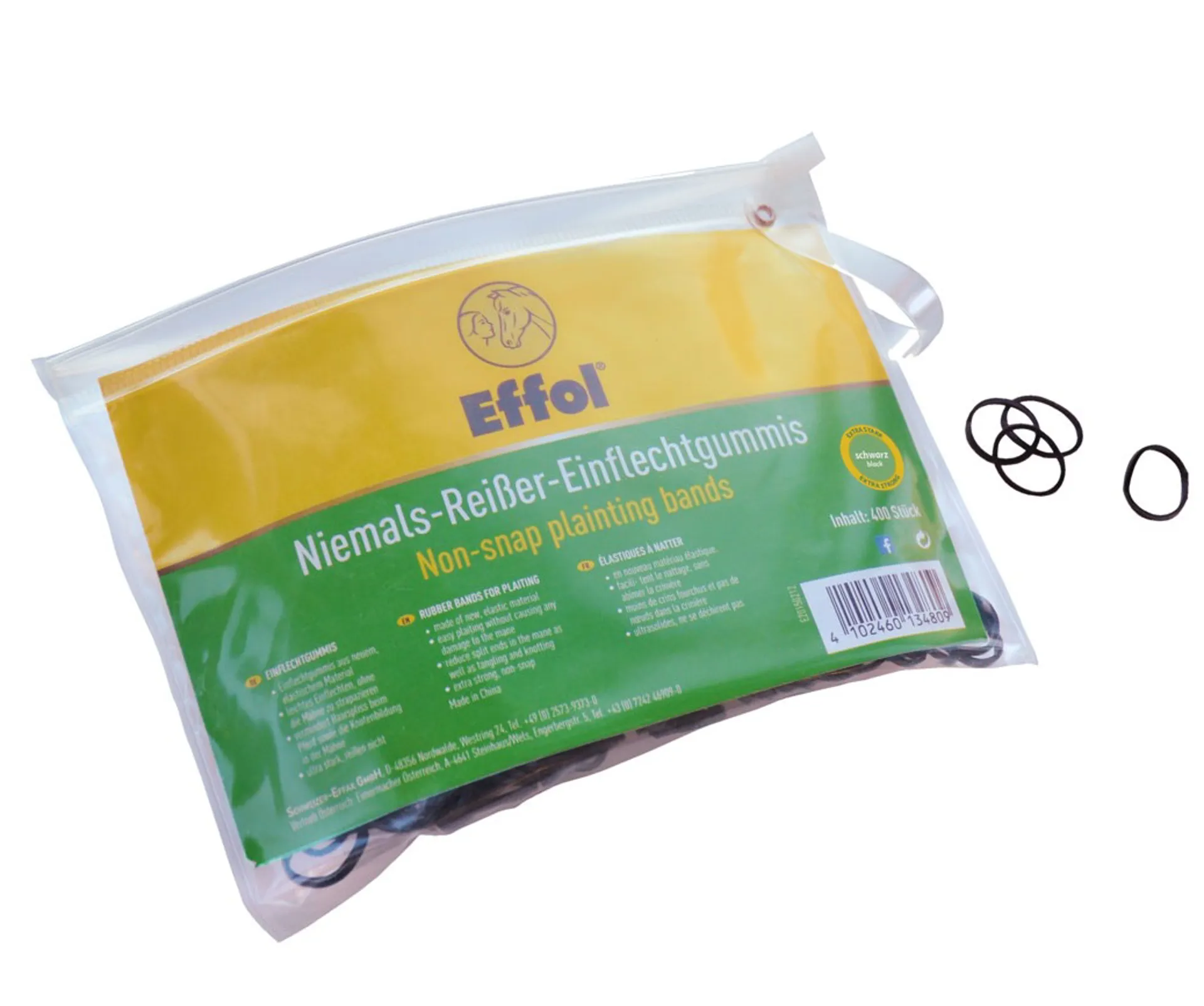 The Effol Slickerbands are non-snap plaiting bands made out of especially elastic material that prevents split hairs as well as tangling of the mane.