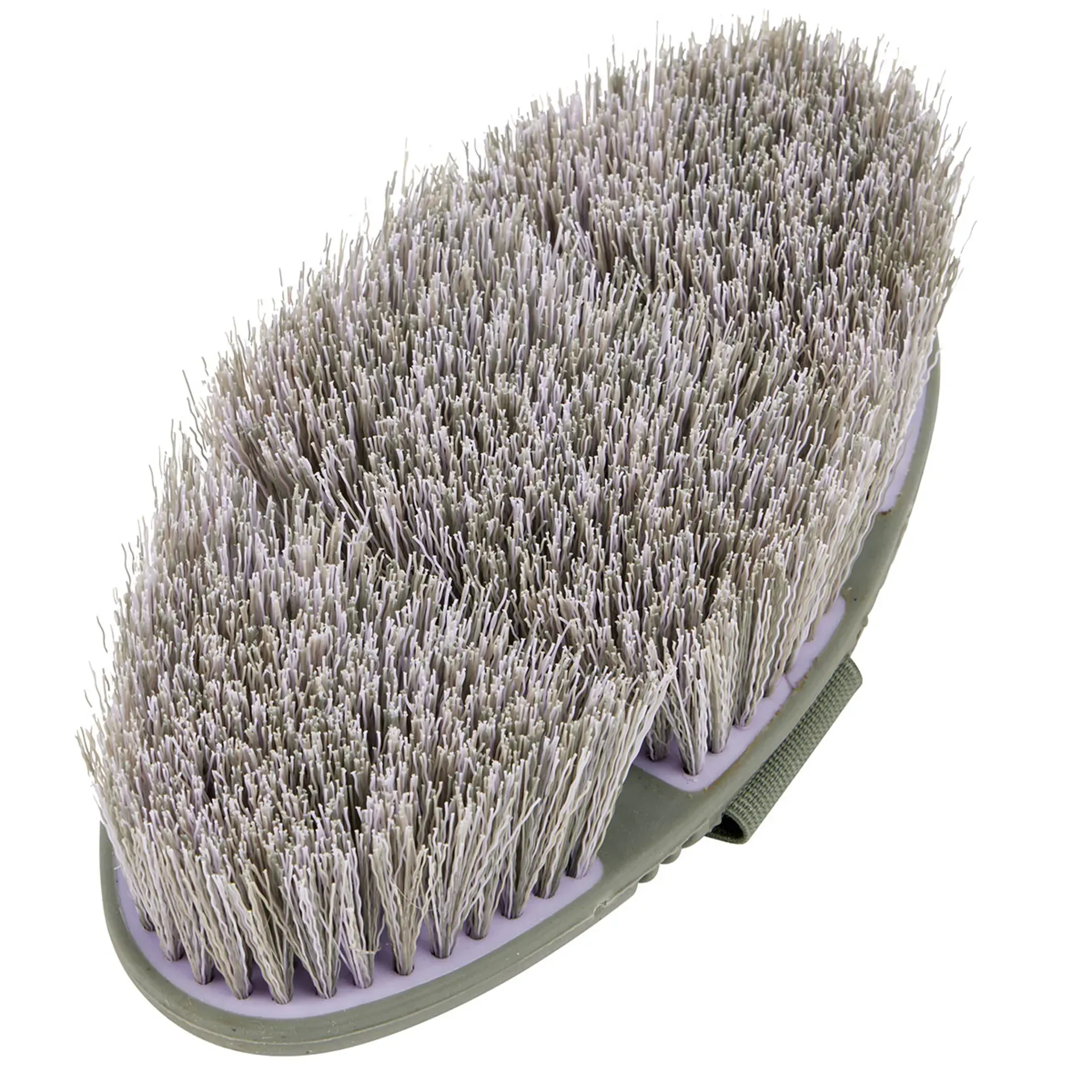 Its long, flicky bristles are perfect for sweeping away dust and dirt, while the flexi shape allows it to reach every contour of the horse’s body with ease. An elasticated webbing strap ensures a comfortable, secure hold.