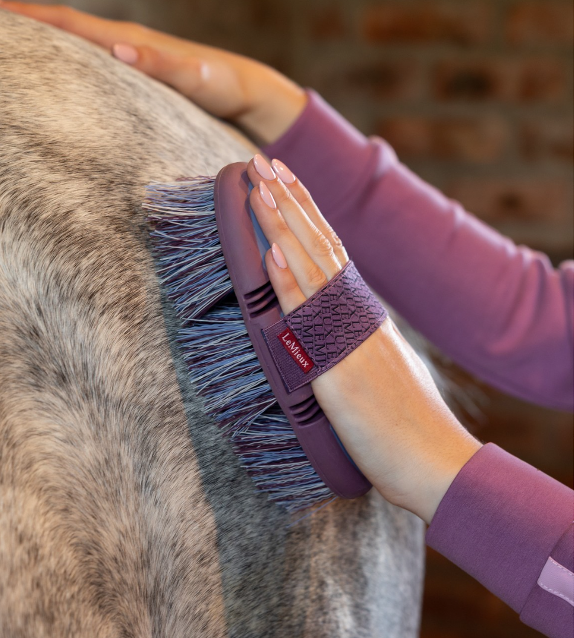 The LeMieux Flexi Flick Brush is designed to make grooming satisfying and effective.