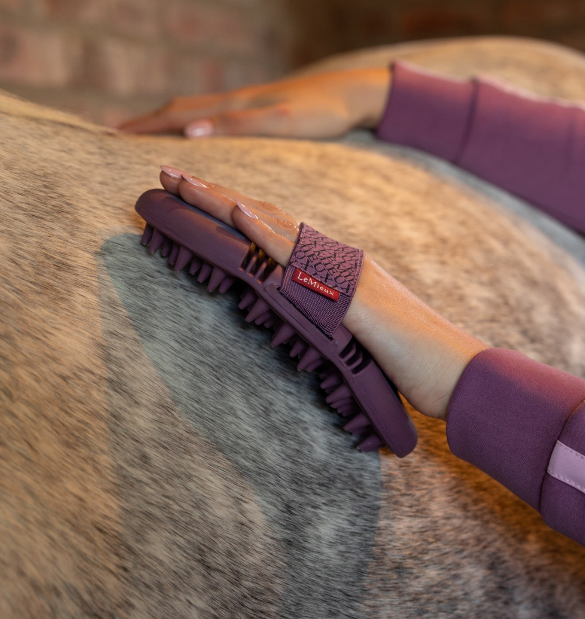 The LeMieux Flexi Massage Brush is designed to provide gentle massage and a thorough clean, helping to remove loose hair, dust, and dirt while stimulating circulation.