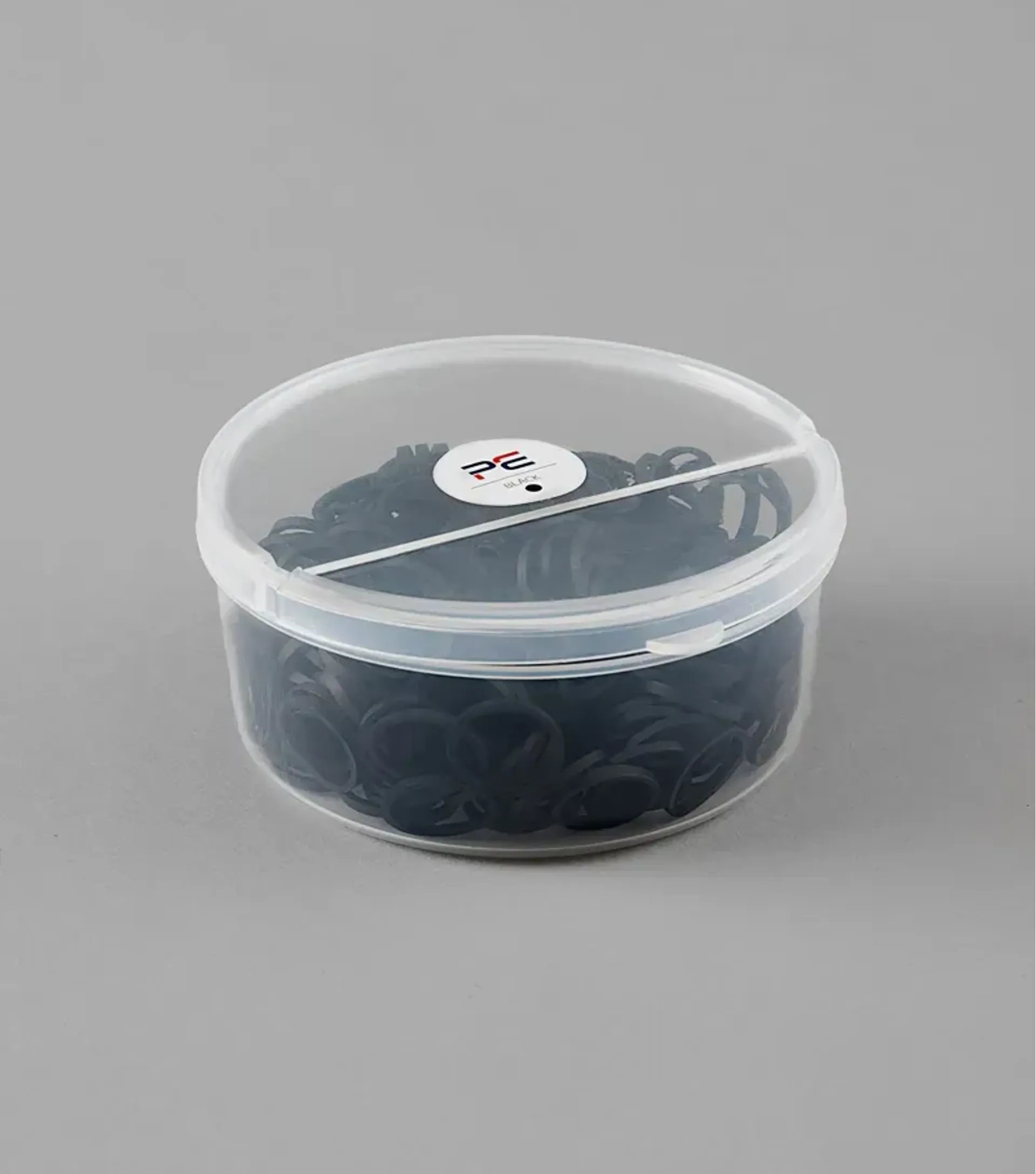 Split pot lid for easy access to Premier Equine Horse Plaiting Bands.