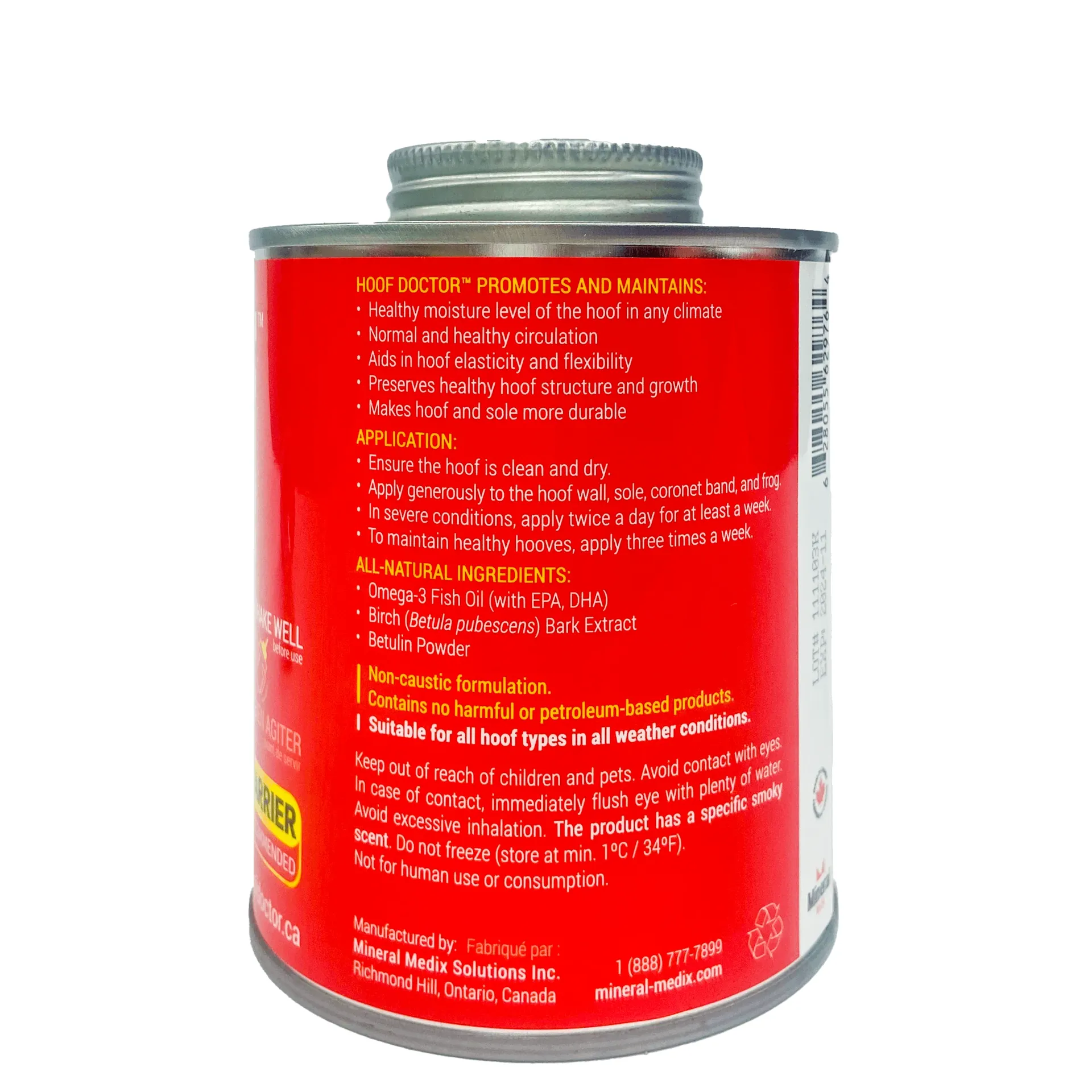 Hoof Doctoris a unique product based on Birch Bark Extract with Omega 3, Betulin, Vitamins A & D. Works great with all types of hooves: horse, donkey, goat, or cow.