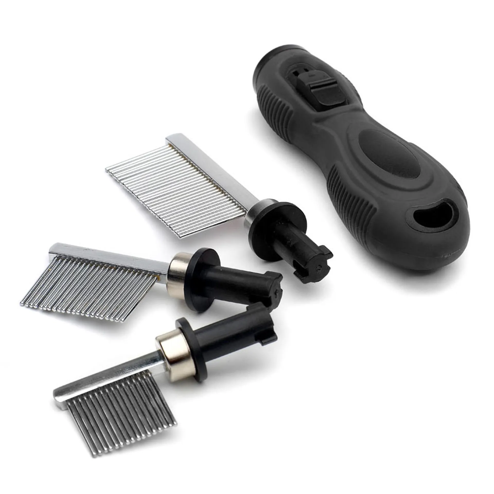 The Supreme Products Quarter Marking Comb set comprises of one ergonomically designed handle and 3 interchangeable quarter marking comb heads.