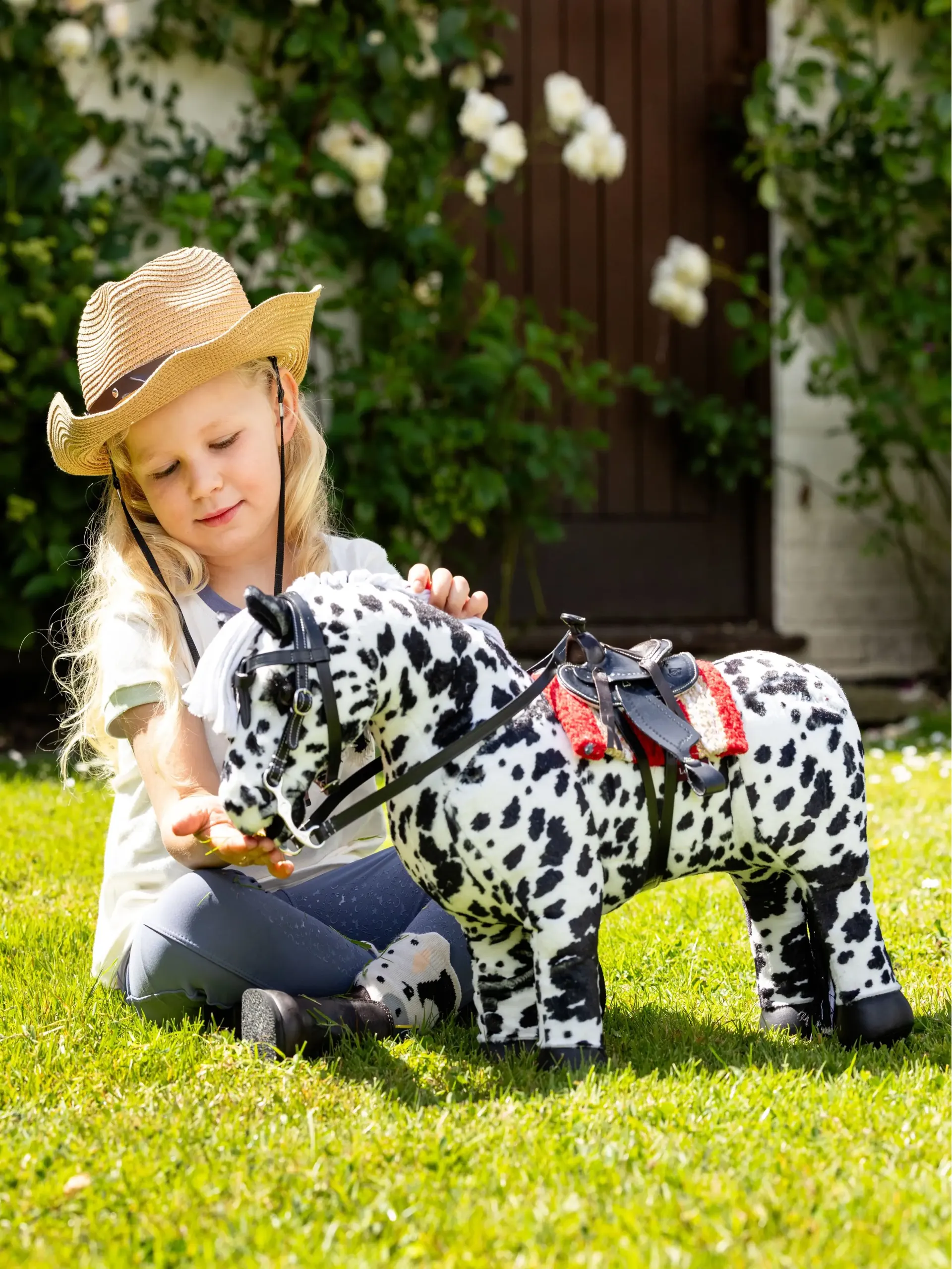 Dakota can be dressed up with the full range of matching LeMieux Toy Pony accessories, including colourful saddle pads, fly hoods, polo bandages, and fully working leather saddles and bridles. For extra fun, she can even be styled with her very own Western set for a true cowpoke look.