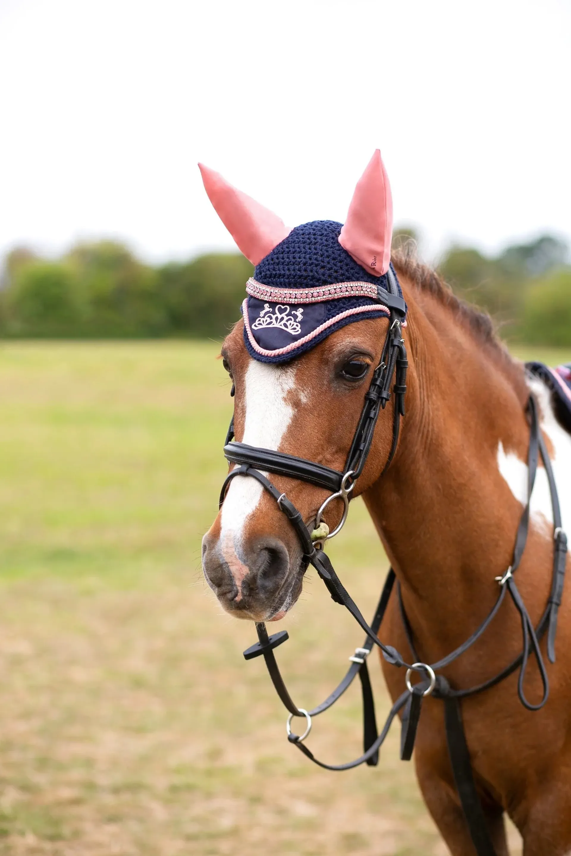 This pretty fly veil by Hy Equestrian is made from a navy close-knit crochet and features soft, stretchable and breathable ears with The Princess and The Pony emblem.