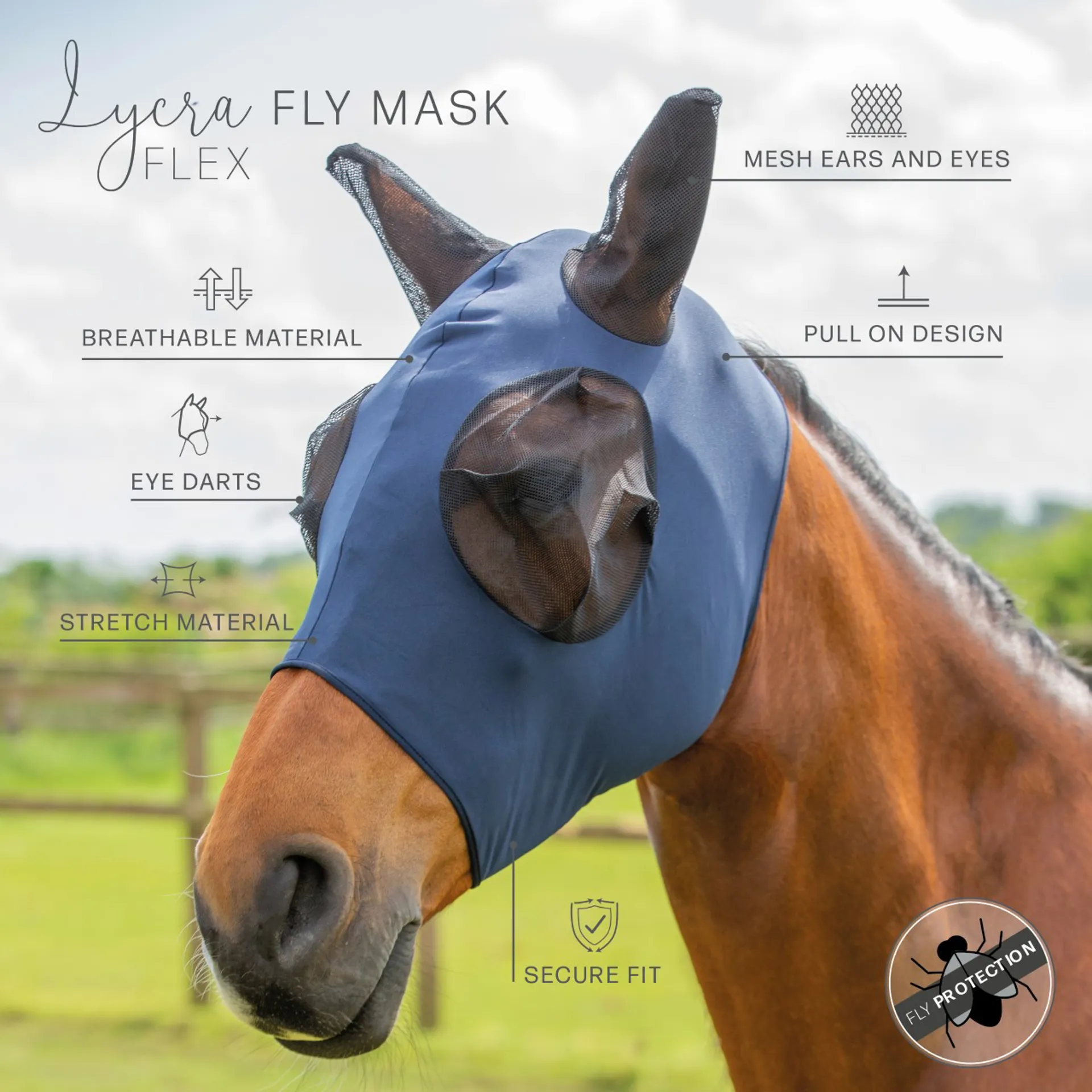 Question(s) asked regarding Hy Equestrian Lycra Flex Fly Mask - Navy