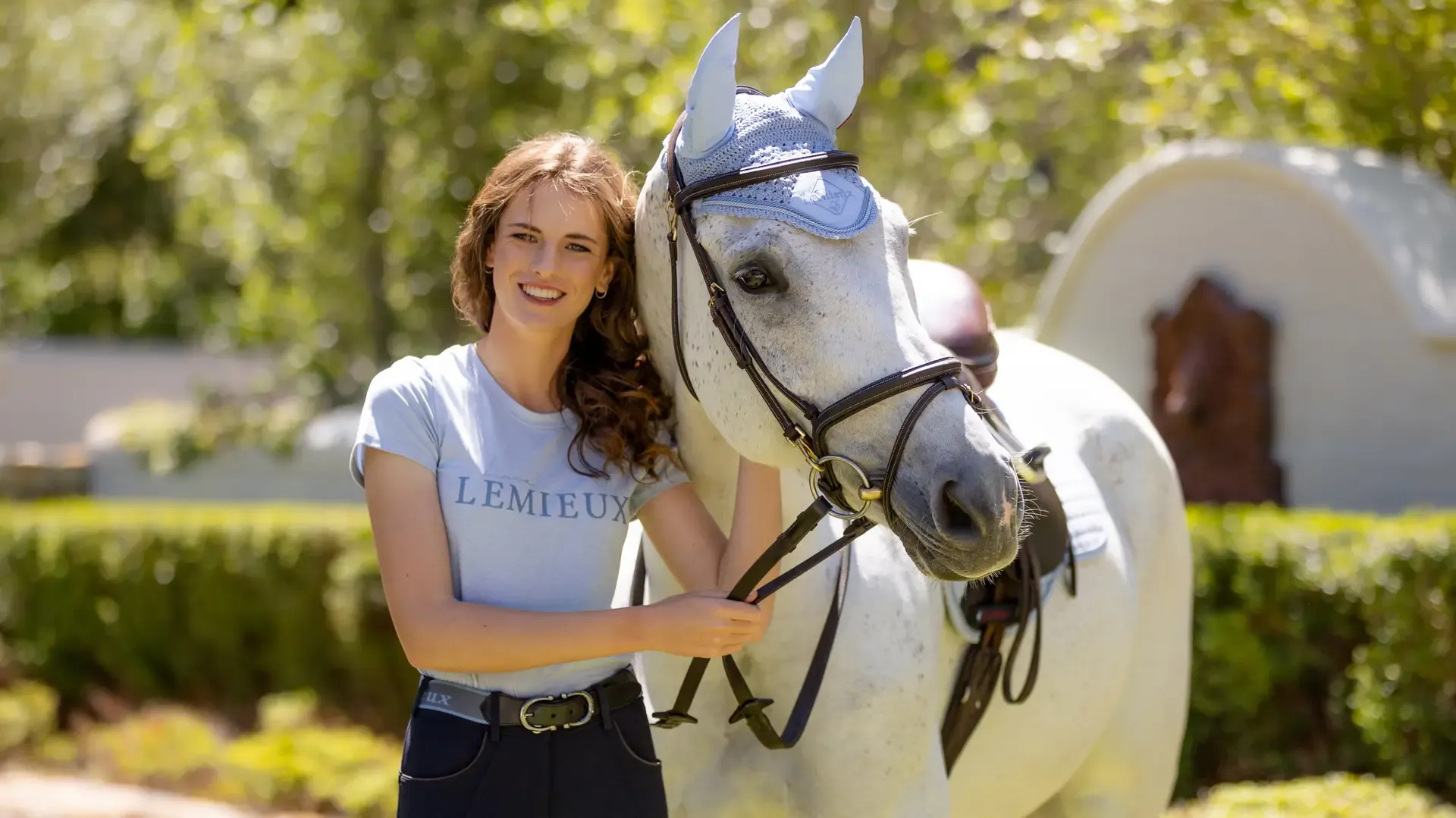 The 100% cotton face veil is handmade in four-way stretch crochet and edged with a luxurious double-twist braid, ensuring a secure and close fit under the bridle. Sophisticated embroidered LeMieux branding adds the finishing touch.