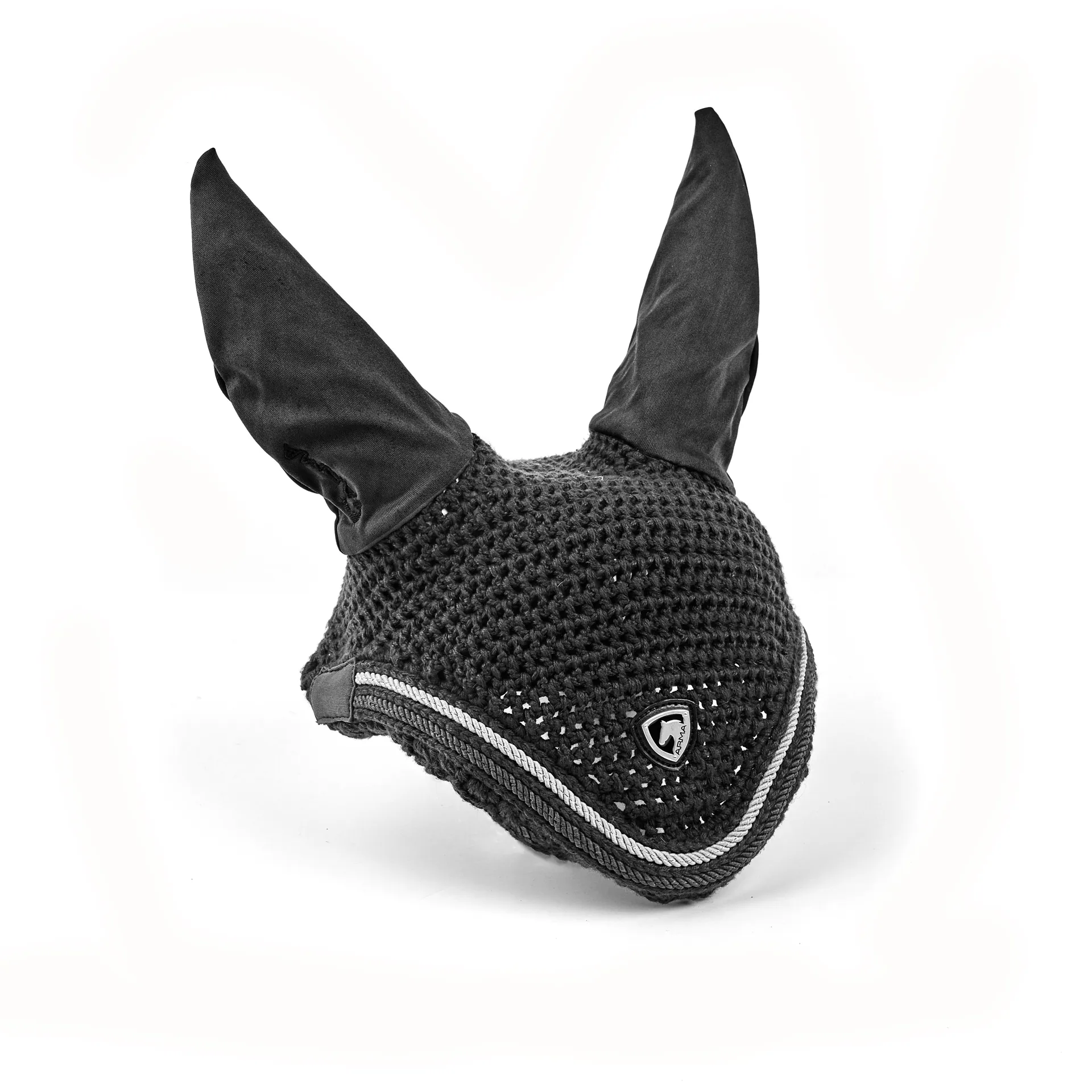 Offering relief during warmer months, keeping your horse or pony free from irritants when out riding. The crochet hood allows free air flow to prevent heat build up. Stretch ears are highly breathable and block biting insects. Designed to be worn under a bridle. Smartly trimmed and featuring a smart ARMA emblem badge.