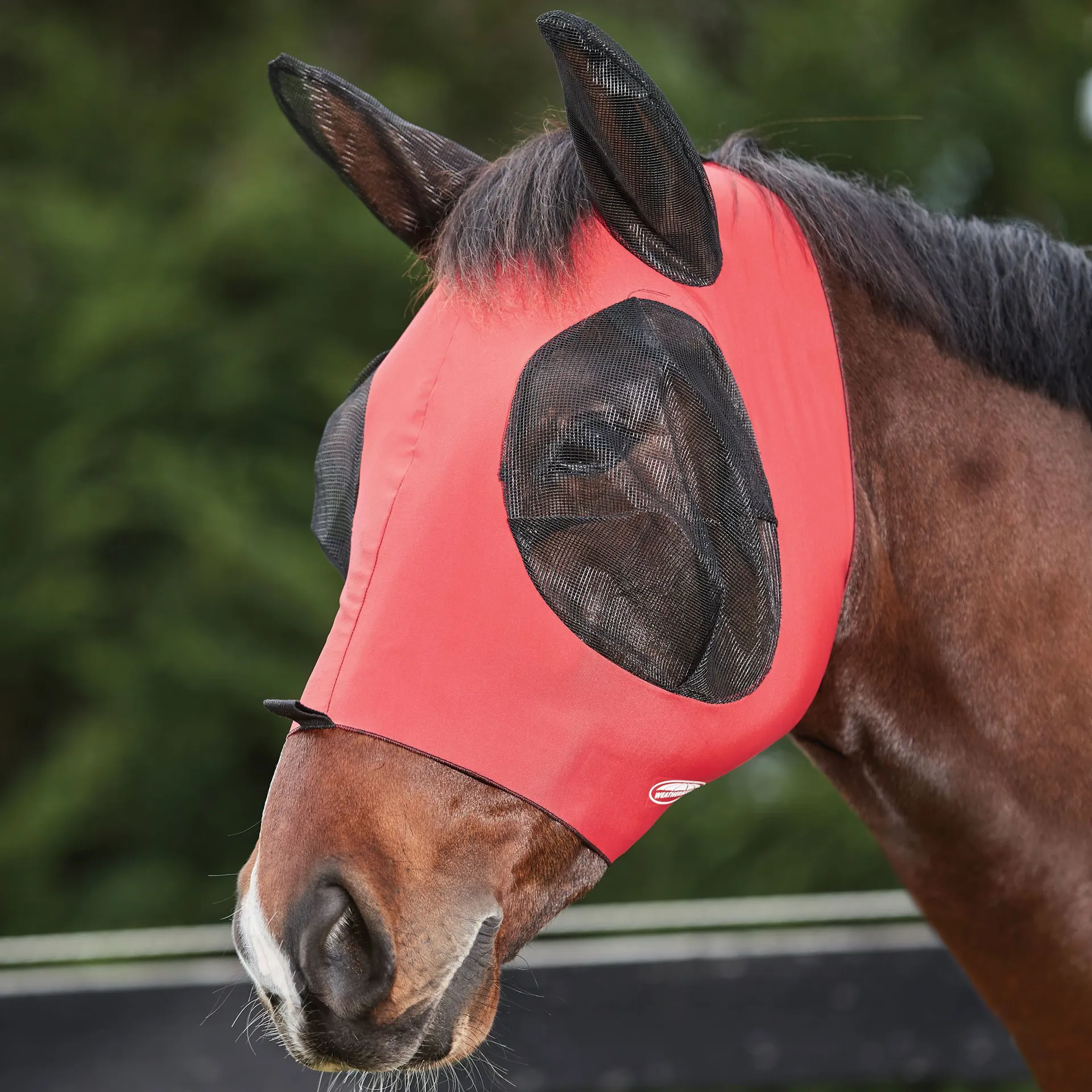 Question(s) answered about WeatherBeeta Deluxe Stretch Bug Eye Saver with Ears - Red/Black