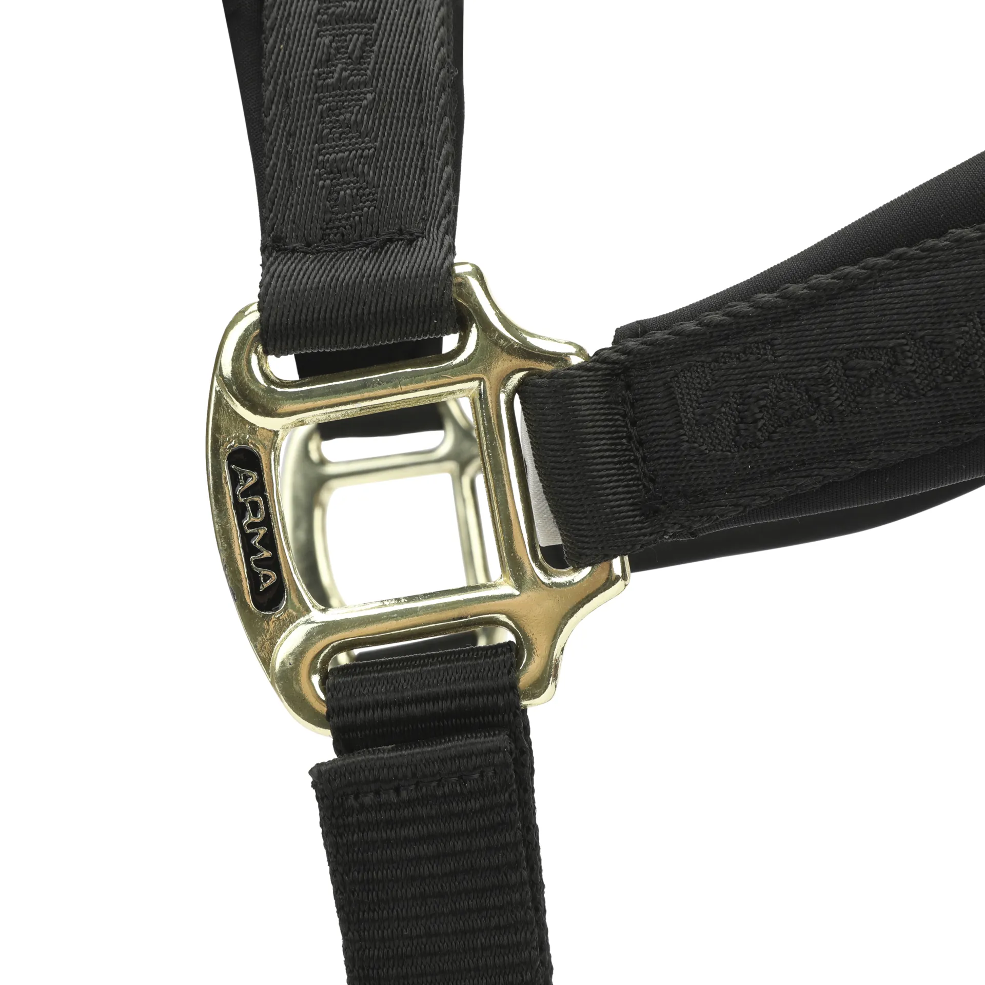 Attractive self-colour jacquard signature ARMA webbing features at the head, nose and cheeks to add style. Adjustable on both sides of the headpiece and at the backstay with a convenient clip-on throatlash.