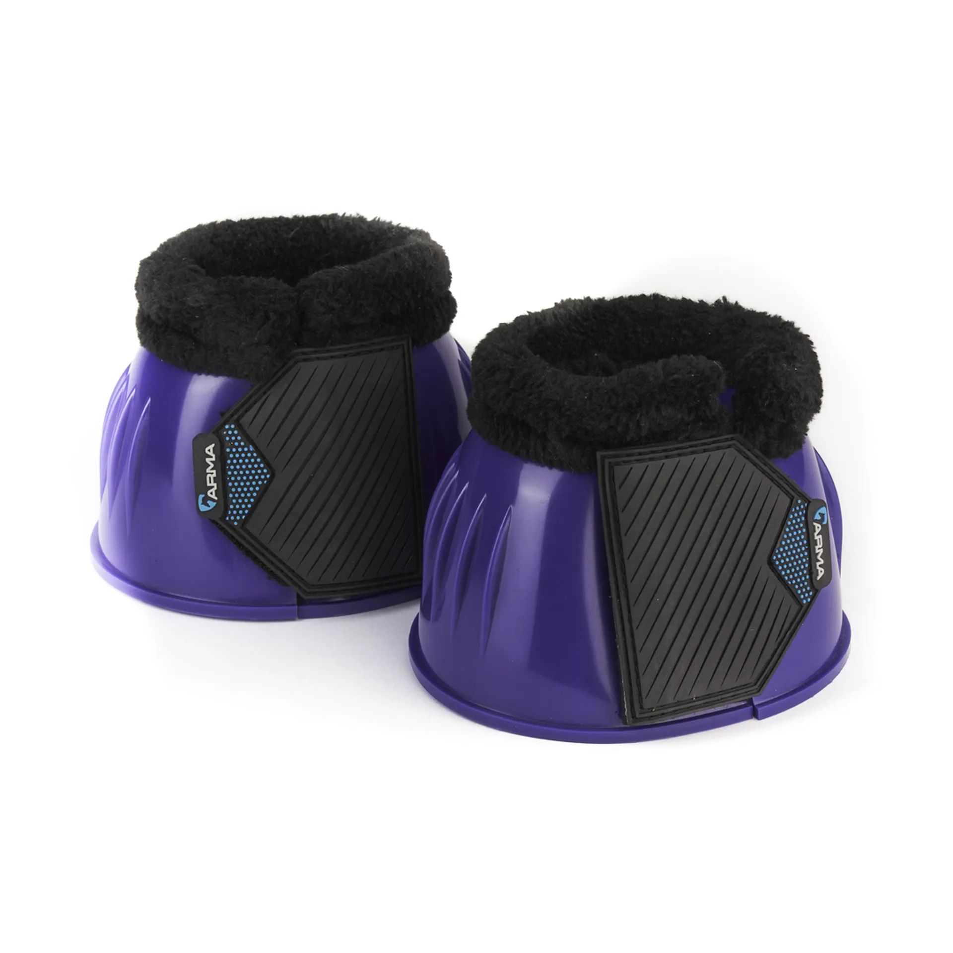 Fur trimmed tops protect delicate pasterns, the flexible material protects the heel bulb during schooling, exercise or turnout. Easy grip double sided touch close straps secure the boot with reassurance. Attractive wide rubber straps are finished with the ARMA logo.