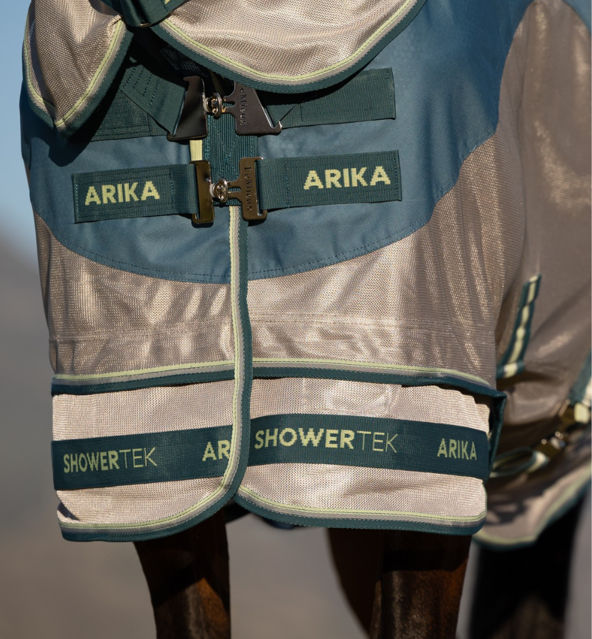 The LeMieux Arika Shower-Tek Waterproof Fly Rug offers versatile protection for horses in all weather.