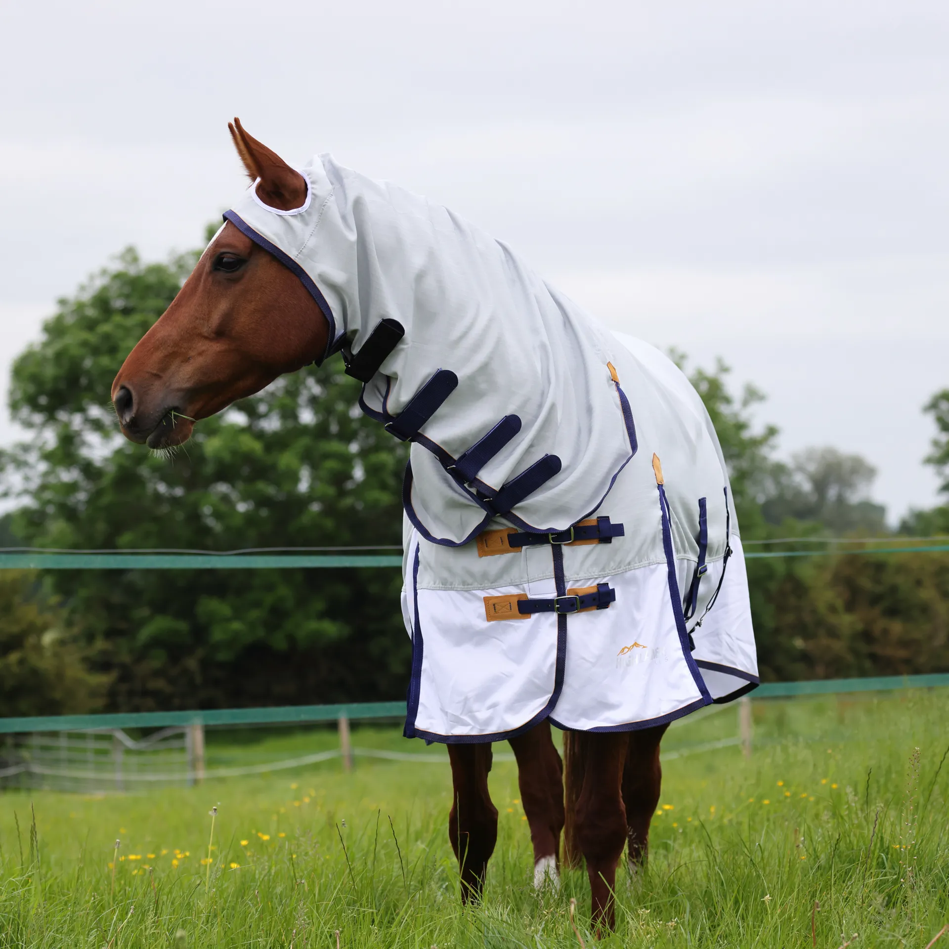 Benefitting from an extended neck which provides fly and sun protection even when grazing, airstream side panels allow free transfer of air to keep the horse cool. A large belly flap, stretch ear panel and extra large pleated tail flap offer the horse maximum coverage.