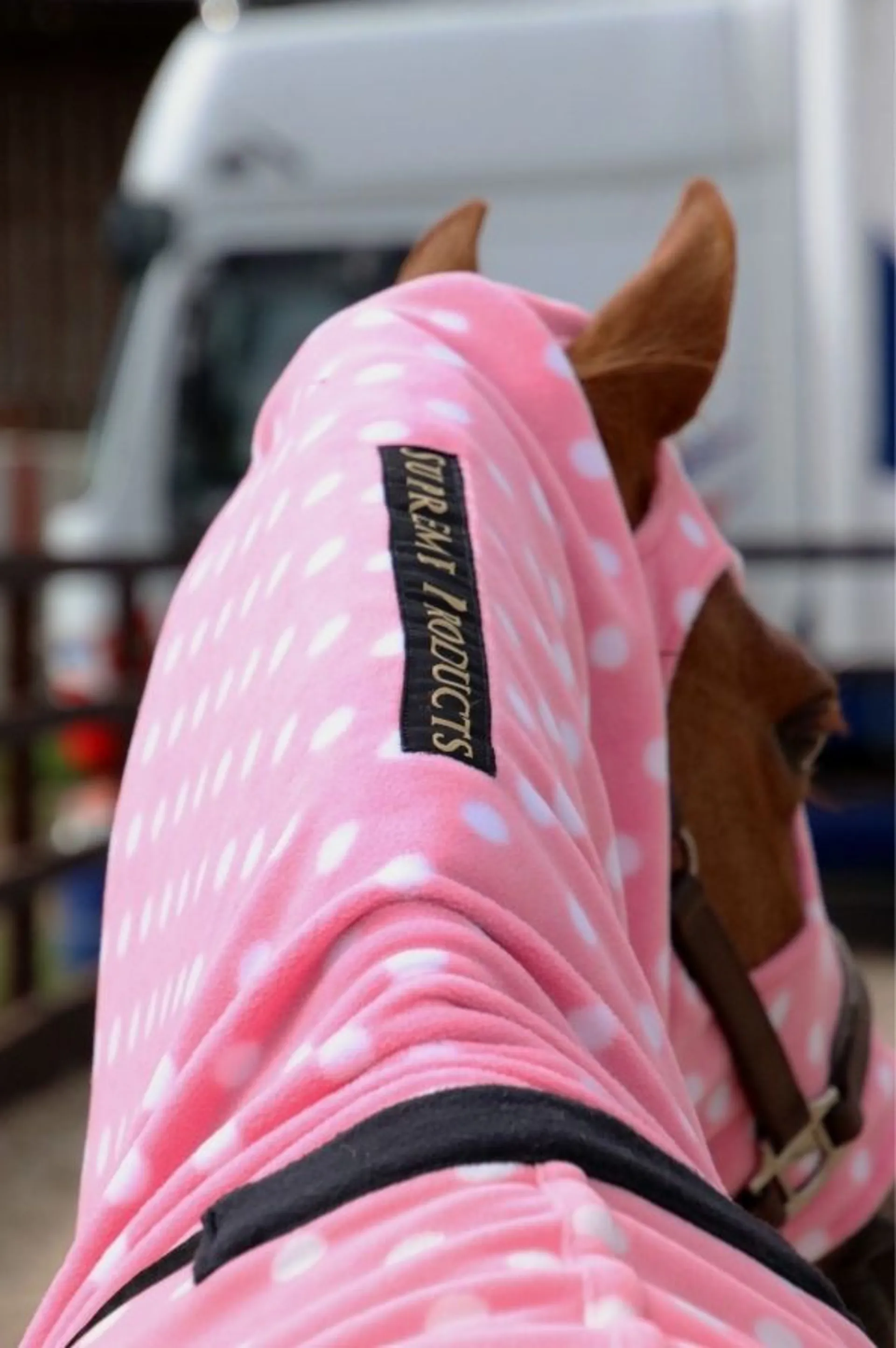 Question(s) asked regarding Supreme Products Dotty Fleece Hood - Pretty Pink