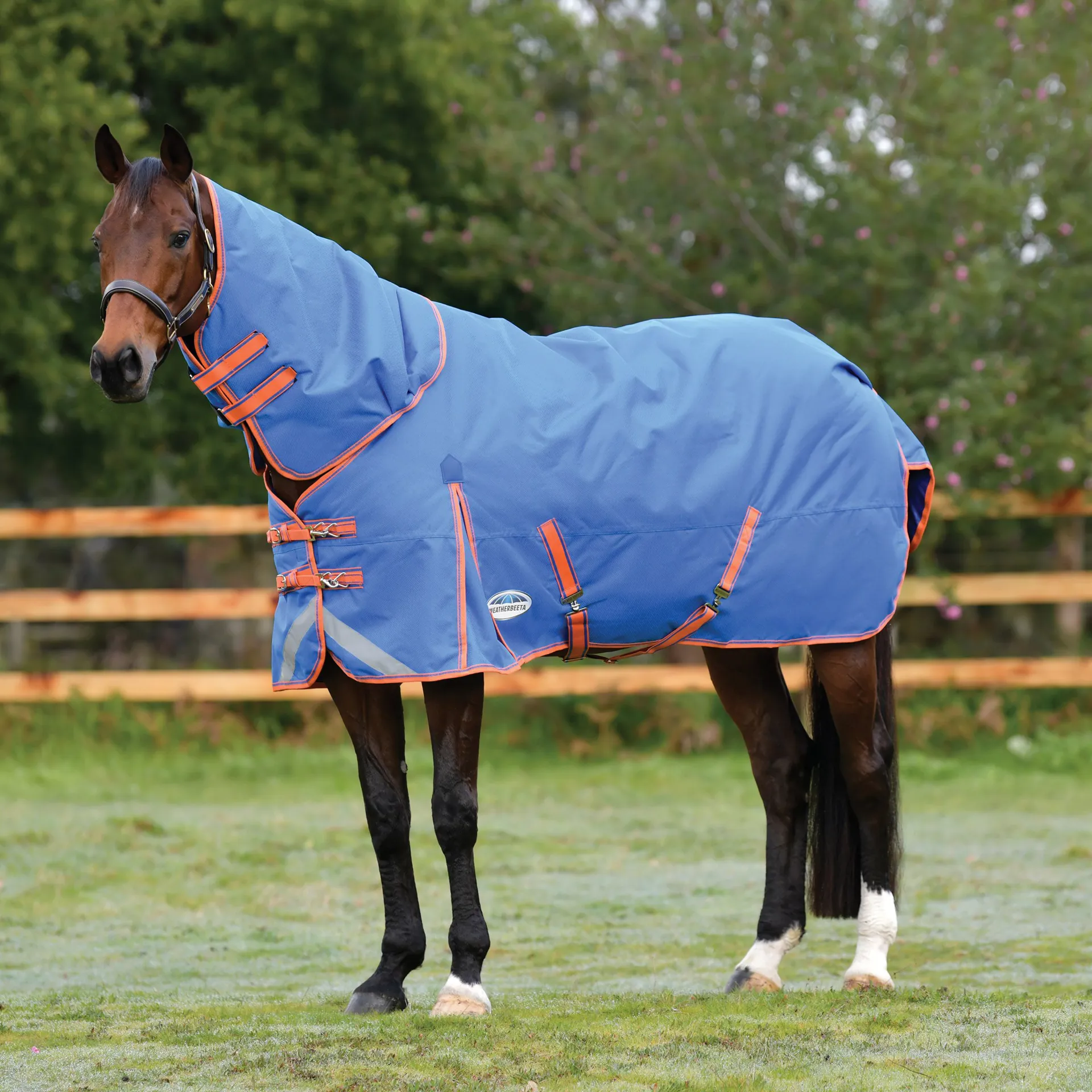 This rug also offers 220g of polyfill which is easily identified with the WeatherBeeta temperature gauge badge, also featuring an extra large tail flap for maximum protection, reflective strips on front each side and tail flap for extra visibility, traditional side gussets for natural movement, twin low cross surcingles and elasticated, adjustable and removable leg straps for a secure and comfortable fit. Hydrostatic Pressure Tested to 2000mm plus.