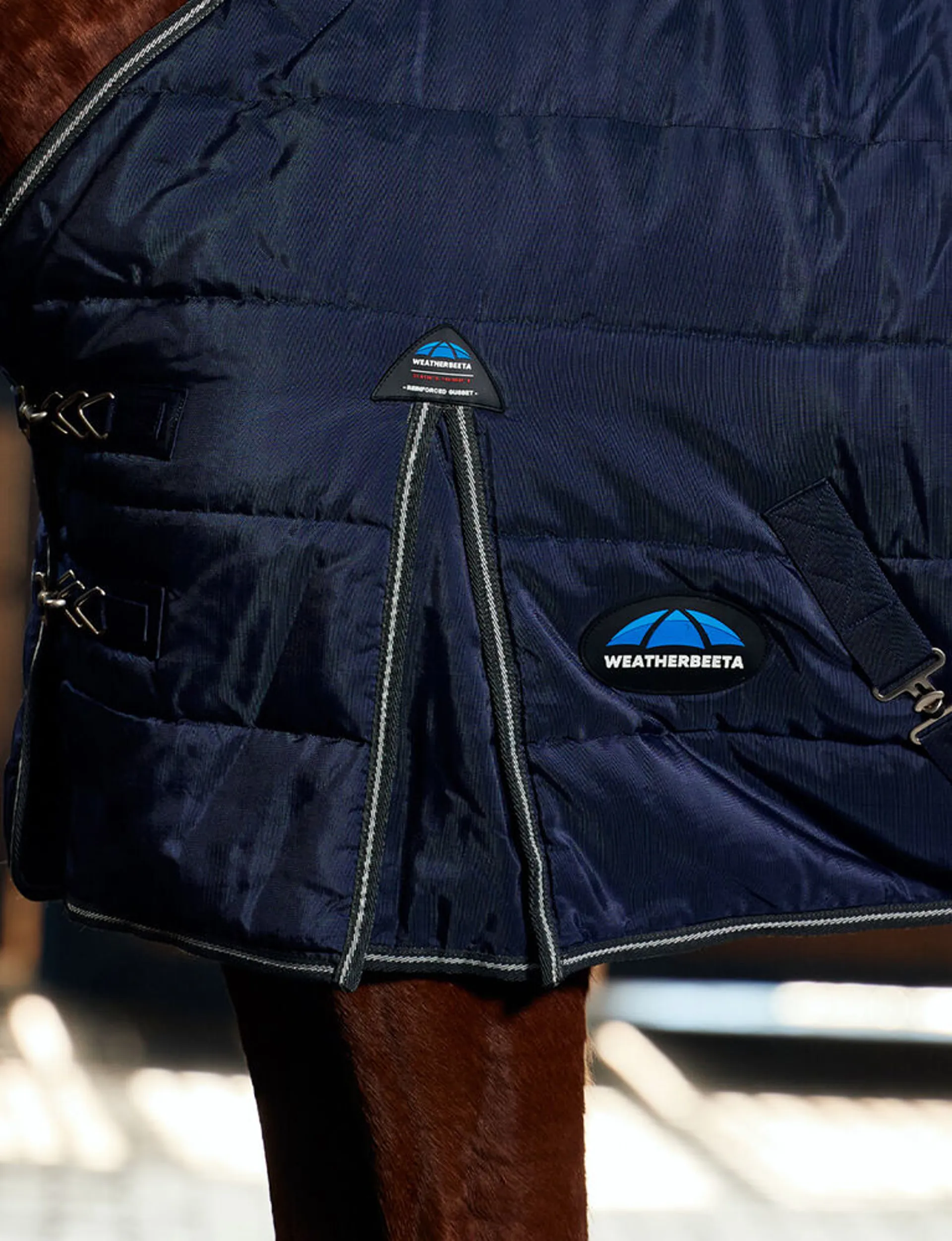 Question(s) asked regarding WeatherBeeta ComFiTec PP Channel 220g Quilt Stable Detach-A-Neck Rug - Navy/Charcoal