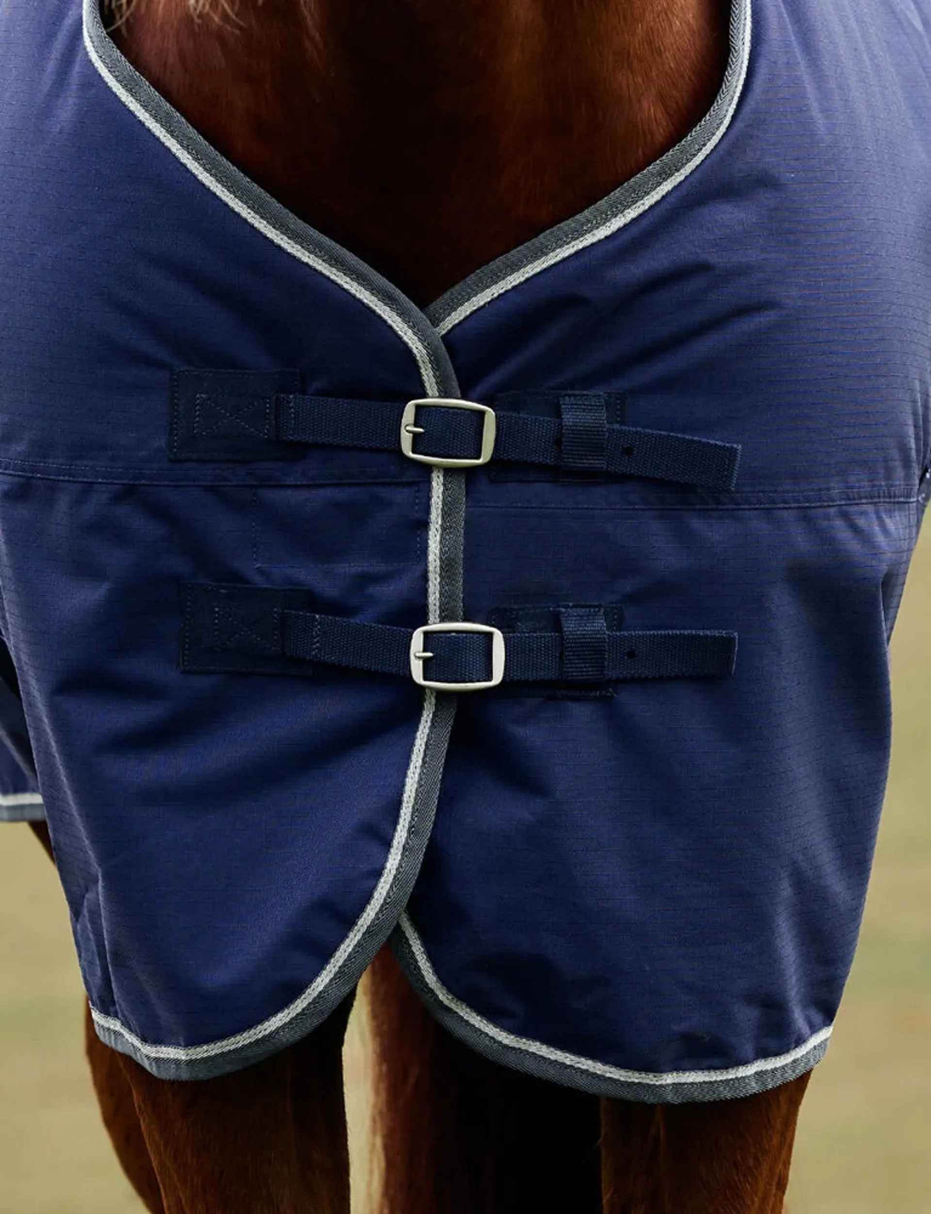 Question(s) asked regarding WeatherBeeta ComFiTec Tyro Turnout Standard Neck 50g Rug - Navy/Charcoal