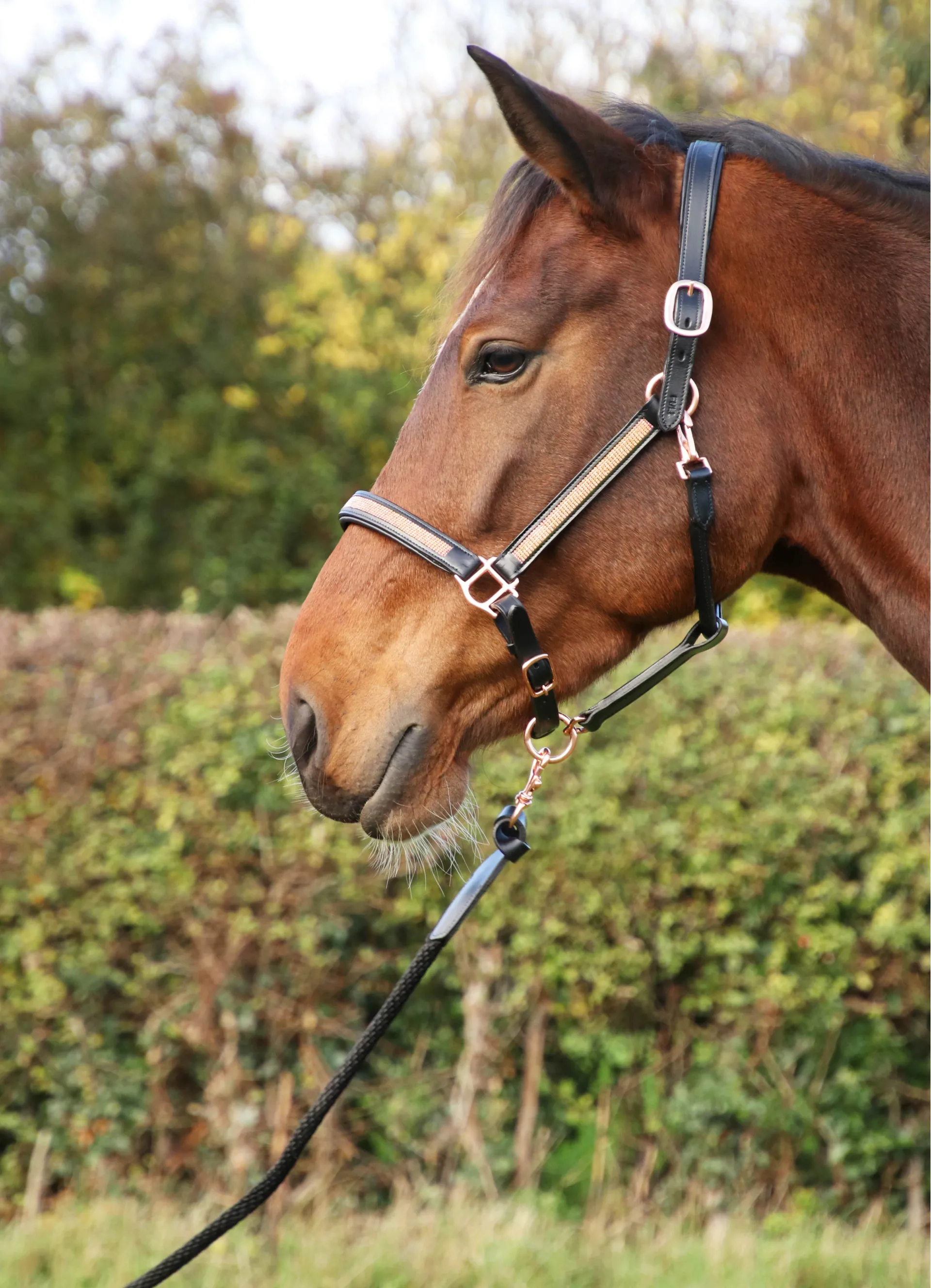 Question(s) asked regarding Hy Equestrian Rosciano Rose Gold Lead Rope - Black/Rose Gold