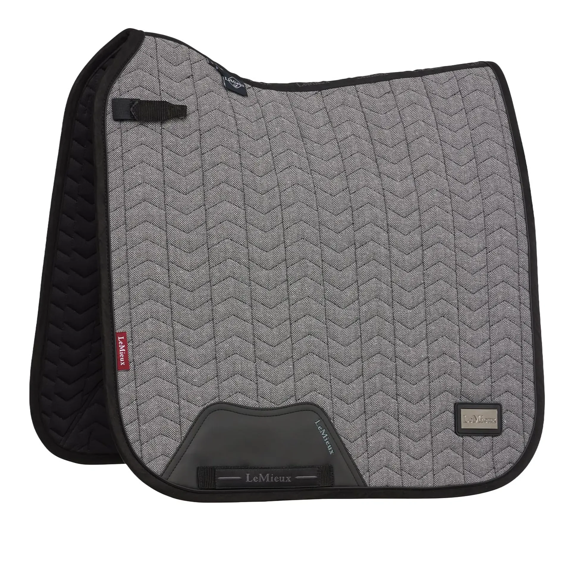 The LeMieux Aspen Dressage Saddlecloth features a sporty chevron quilting pattern that combines elegance with an athletic edge.